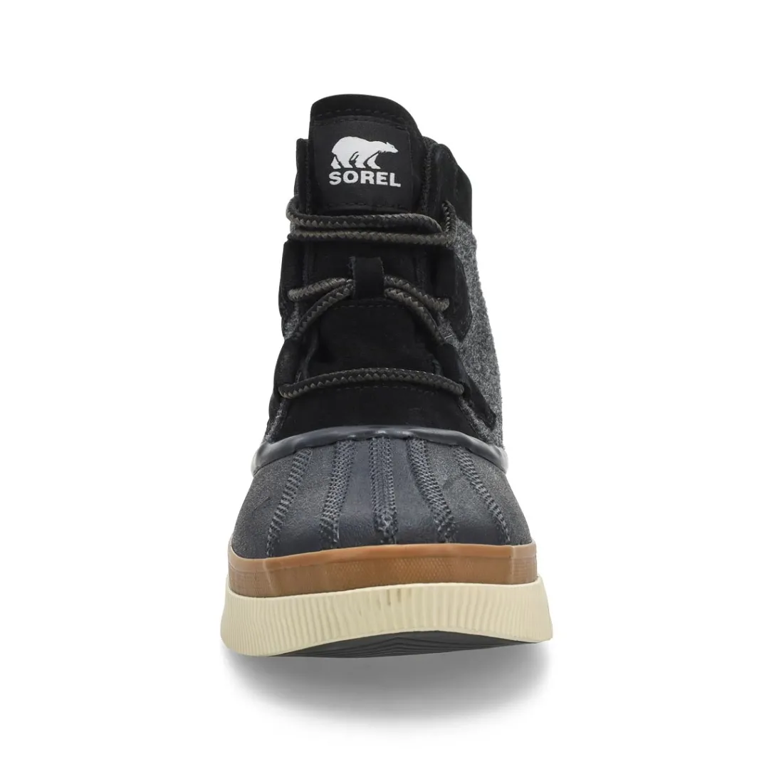 Boot up for fall and winter’s worst with the Out’N About IV waterproof boots from Sorel. Featuring a full grain leather and suede upper with seam-sealed construction. This boot has soft textile lining that helps guard against the cold elements. It delivers major coverage and coziness, with a molded Evertread rubber sole for excellent grip on icy terrain.