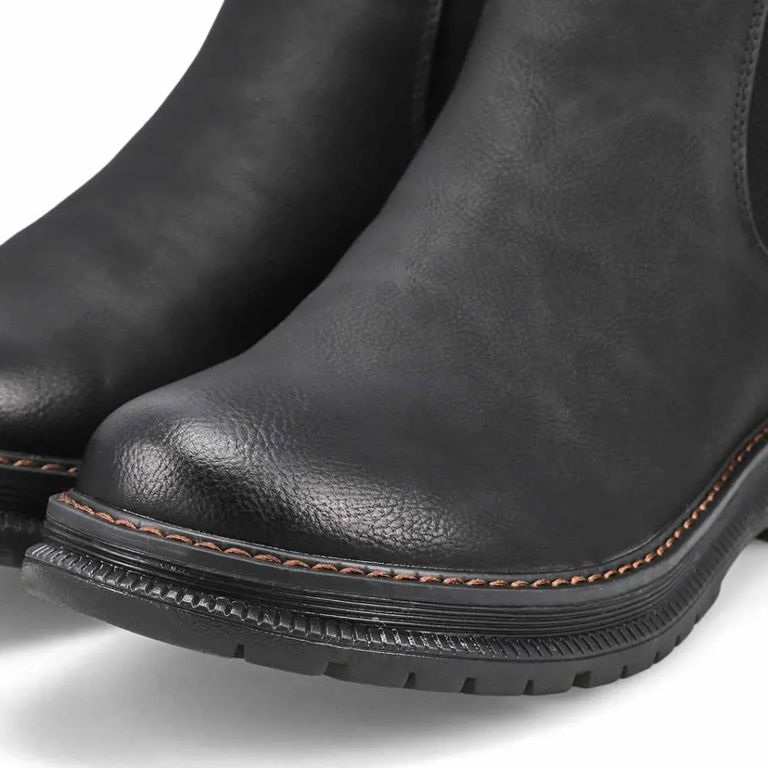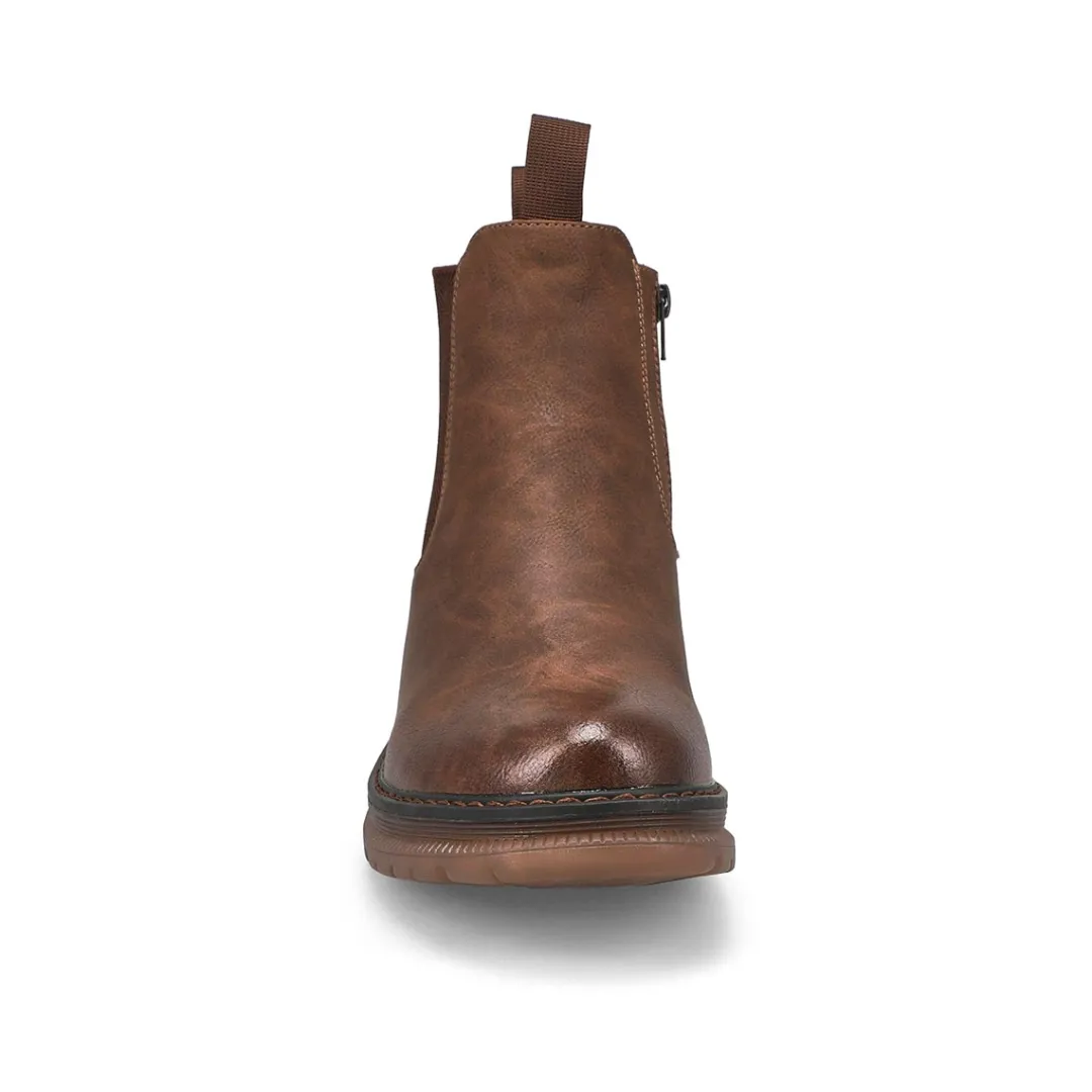 Walk in the Packard 02 Vegan moro Chelsea boot from B&B by SoftMoc to feel and look good all day. Featuring a Smooth Polyurethane upper with stitch detailing. Elastic goring with a side zipper for easy on/off. Plush lining surrounds the foot in comfort. Lightly cushioned removable insole for all day comfort. Durable TR outsole.
