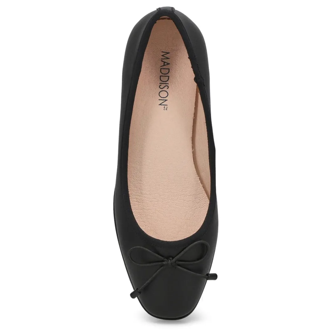 With the striking slender silhouette design, the Paislee-M Ballerina black flat from Maddison by SoftMoc are sure to bring a contemporary twist to your classic style. Featuring a genuine patent leather upper with a smooth lining. Cushioned insole for all day comfort. A classic round toe styling with a durable TPR outsole.
