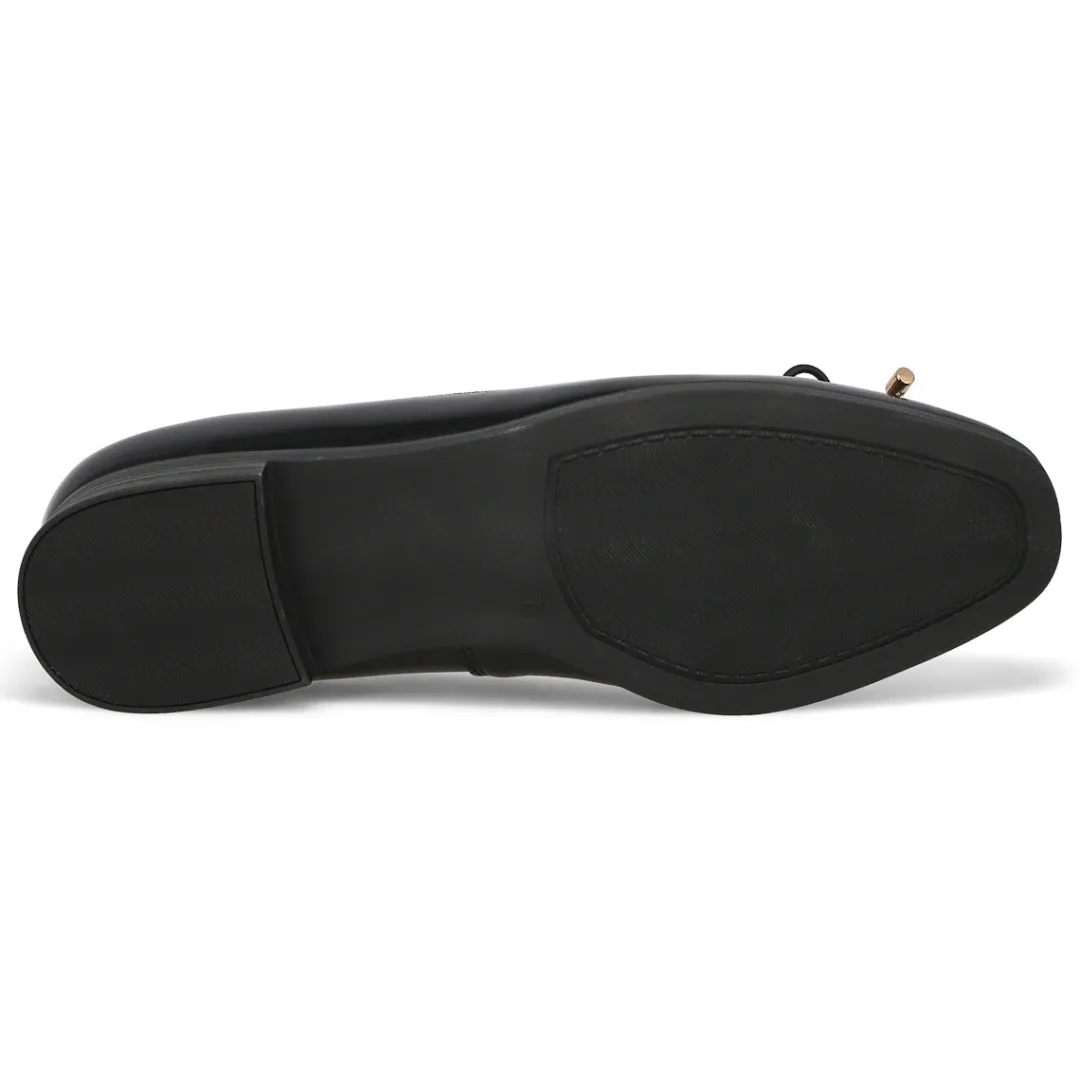 With the striking slender silhouette design, the Paislee Ballerina black flat from Maddison by SoftMoc are sure to bring a contemporary twist to your classic style. Featuring a genuine leather upper with a smooth lining. The Paislee is designed with a cushioned insole for all day comfort. A classic round toe styling with a durable TPR outsole.