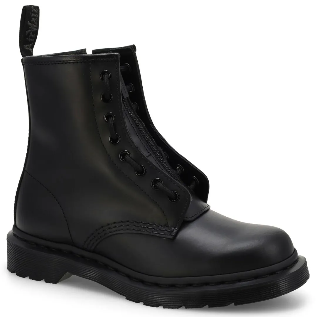 The evolution boot continues. This season, Dr. Martens’ reworked the upper for the Pascal Zip Mono 8-eye boot. Featuring a removable jungle zip attachment on the laces and gator-inspired quarters. Side zipper as well. Goodyear welt: construction the upper and sole are heat-sealed and sewn together with a z-welt stitch.