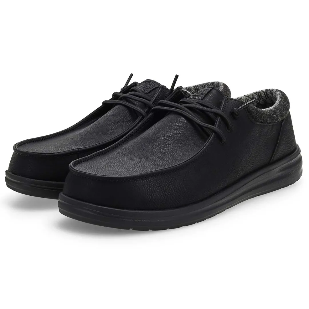 Everyday ease just became a breeze. The Paul Classic black casual shoe from HEYDUDE will become your new fall go-to with its soft faux-leather nubuck upper, heel, and herringbone-patterned lining for a little added detail. Comfort cushioned ankle collar. Easy-on system, makes this shoe travel ready! Comfort and style are one step away.