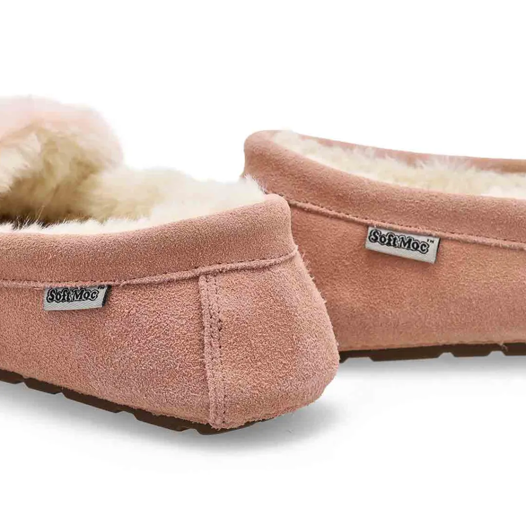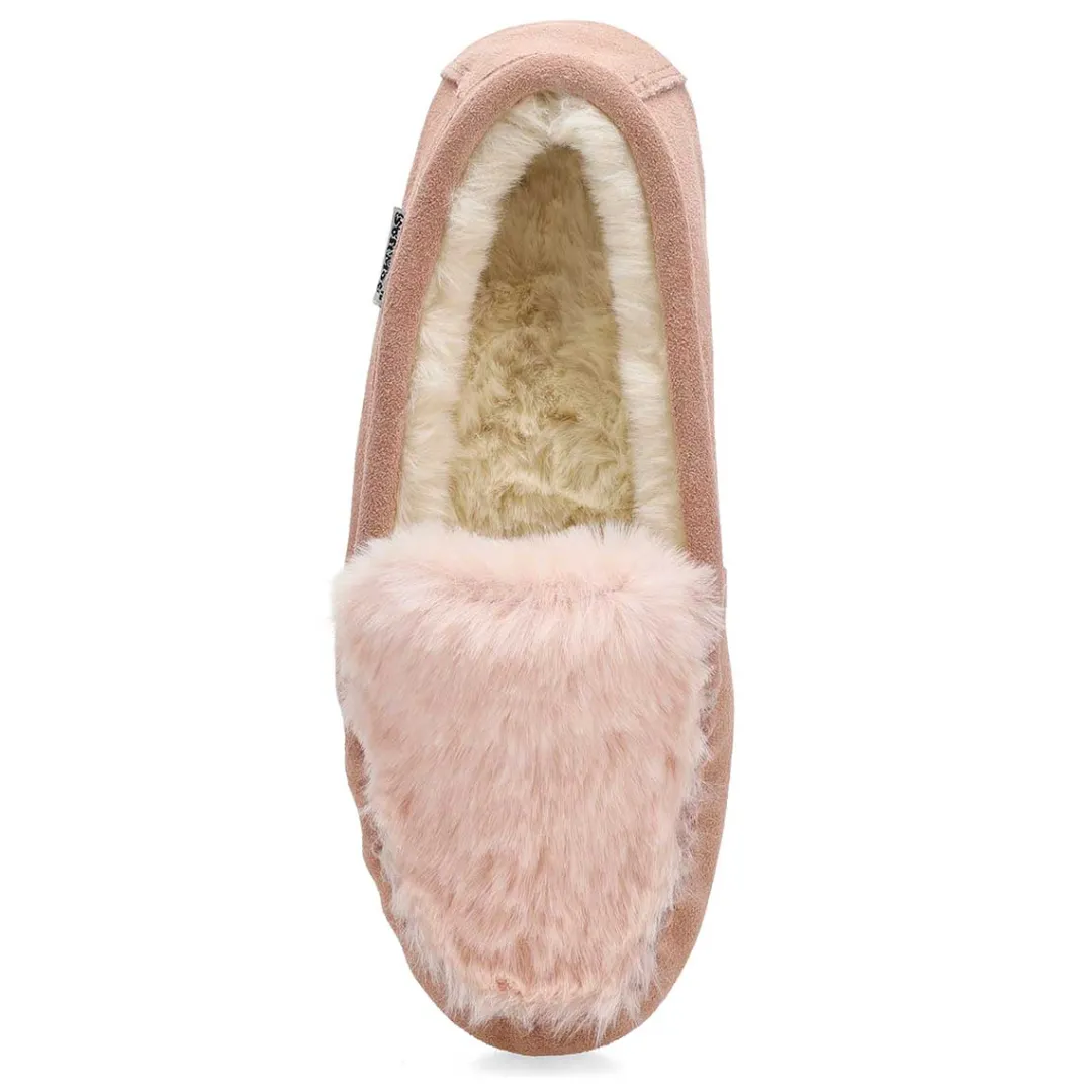 You will love the comfort and the warmth provided by the Pixie pink suede SoftMocs from SoftMoc. The perfect gift for someone special, or just a treat for you ! Memory foam cushioned insole for added comfort. Soft, faux fur gives that cozy feeling. Designed with a durable TPR outsole.