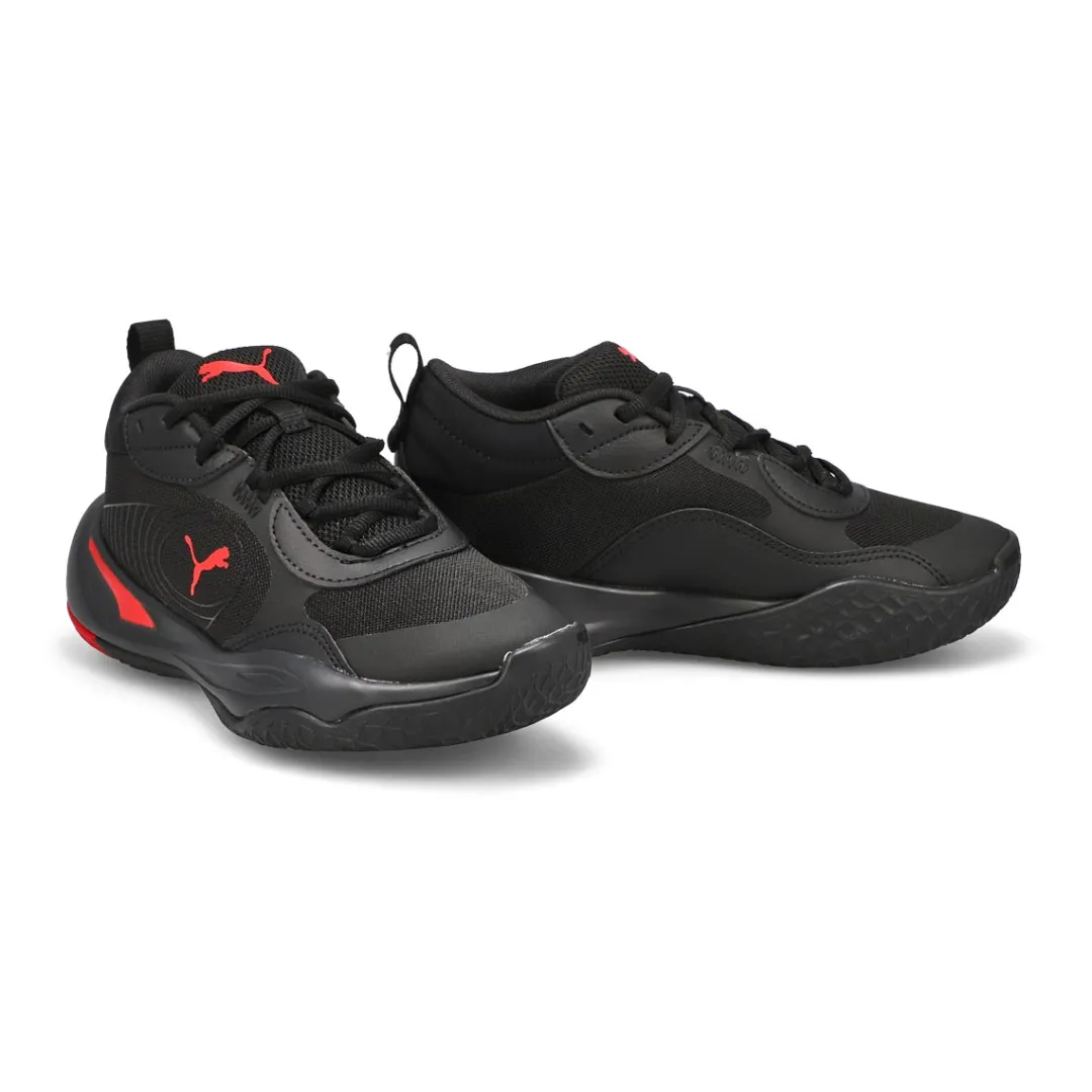 Command the court with style and support in a pair of Playmaker Pro black/ red lace up sneakers from Puma. Designed specifically for basketball, with a lightweight, breathable silhouette, comfortable cushioning, and tons of traction, you’ll be balling like a boss. PROFOAM: Lightweight EVA designed to cushion your landing and propel your next step.
