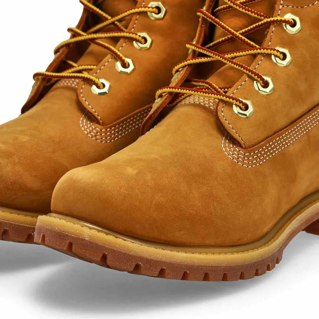 Introducing the women’s Timberland Premium 6-Inch Waterproof Boot with Premium Timberland leather, designed with ReBOTL fabric lining made from at least 50% recycled plastic. This boot helps keep you in total comfort with a rubber lug outsole for traction and 200 grams of PrimaLoft insulation to help keep your feet warm. Anti-fatigue technology helps keep you on the go all day, while seam-sealed waterproof construction helps keep feet dry. Timberland supports responsible manufacturing of leather via the Leather Working Group.