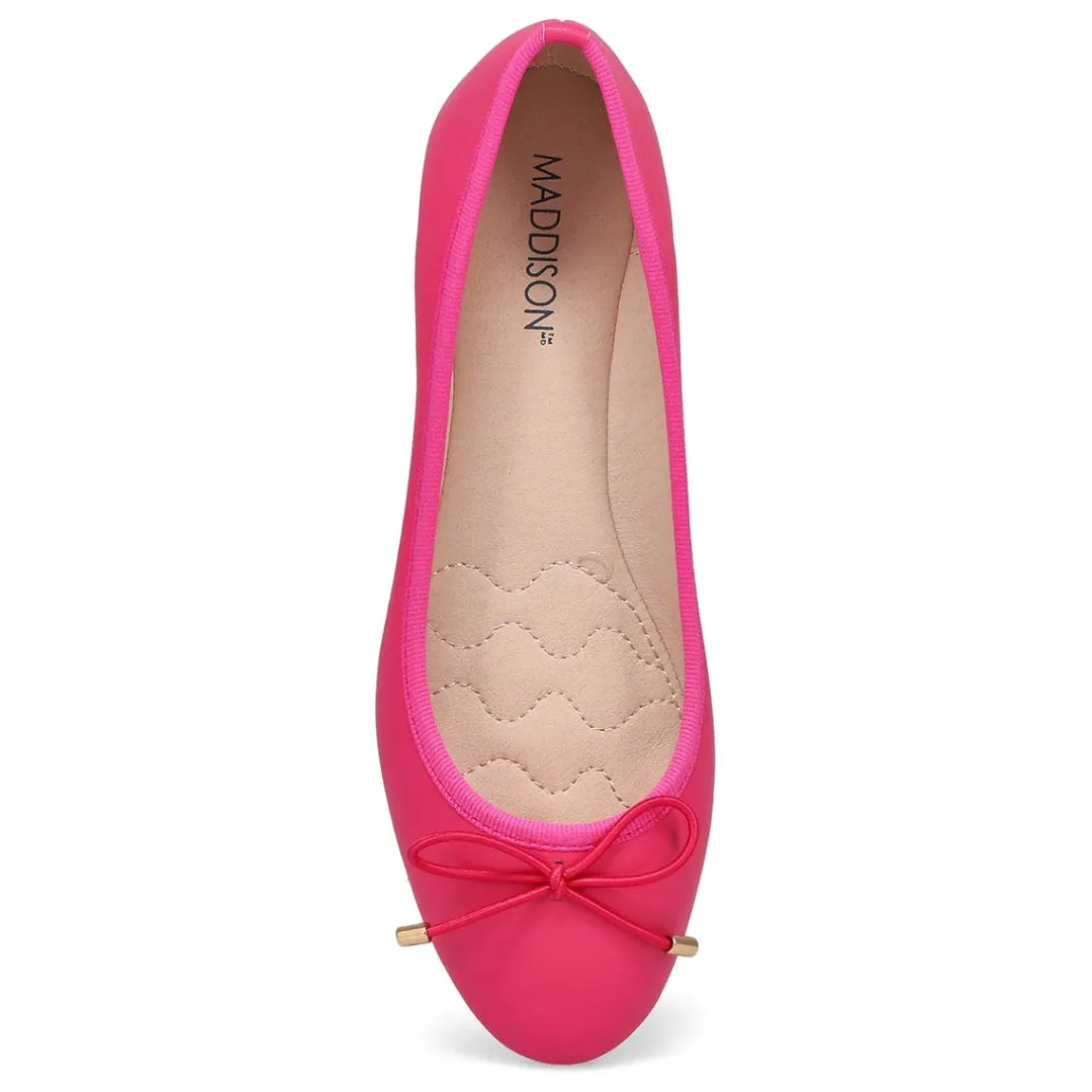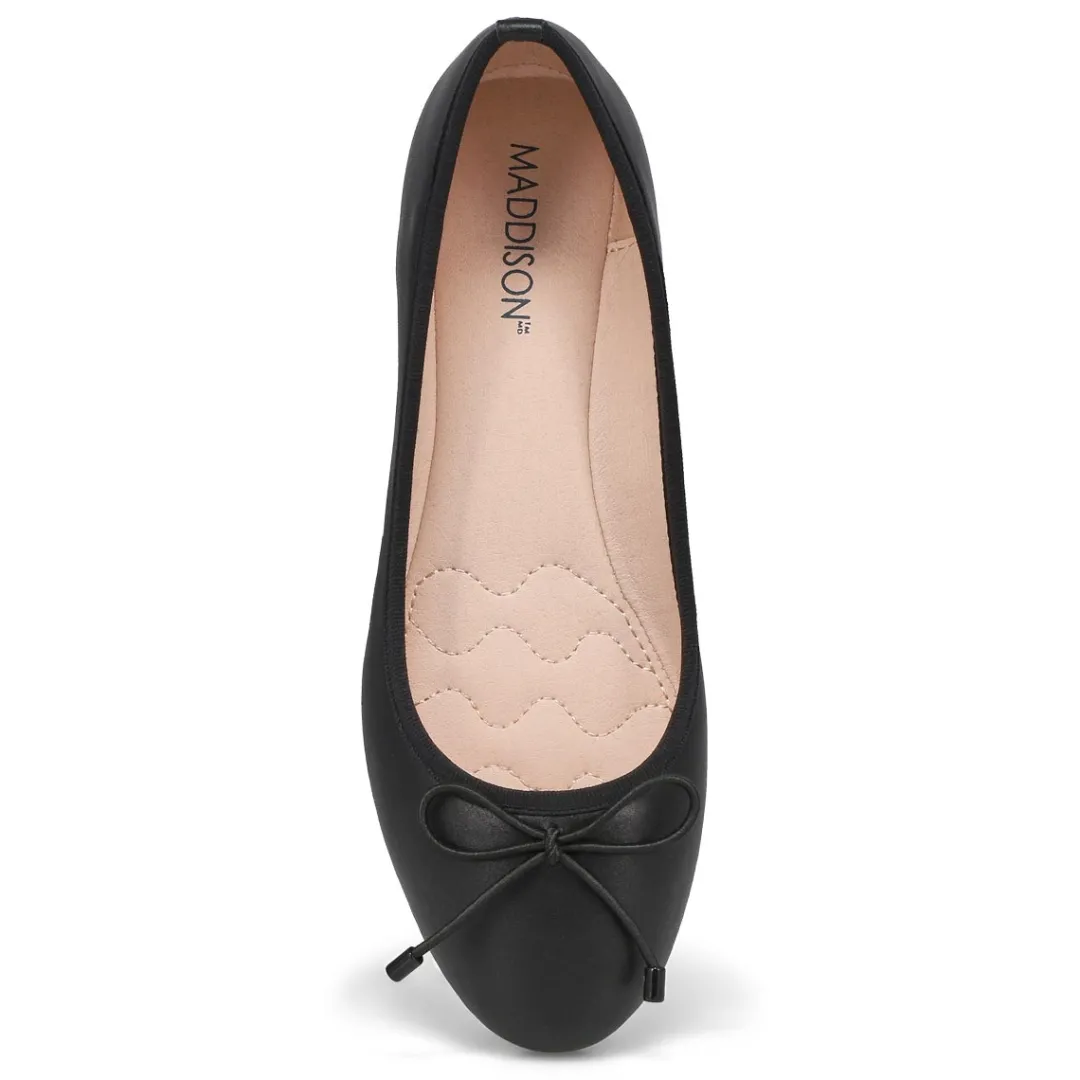 With the striking slender silhouette design, the Priscilla Ballerina flat from Maddison by SoftMoc are sure to bring a contemporary twist to your classic style. Featuring a genuine leather upper with a breathable lining. Cushioned Memory foam insole for all day comfort. A classic round toe styling with a durable TPR outsole.