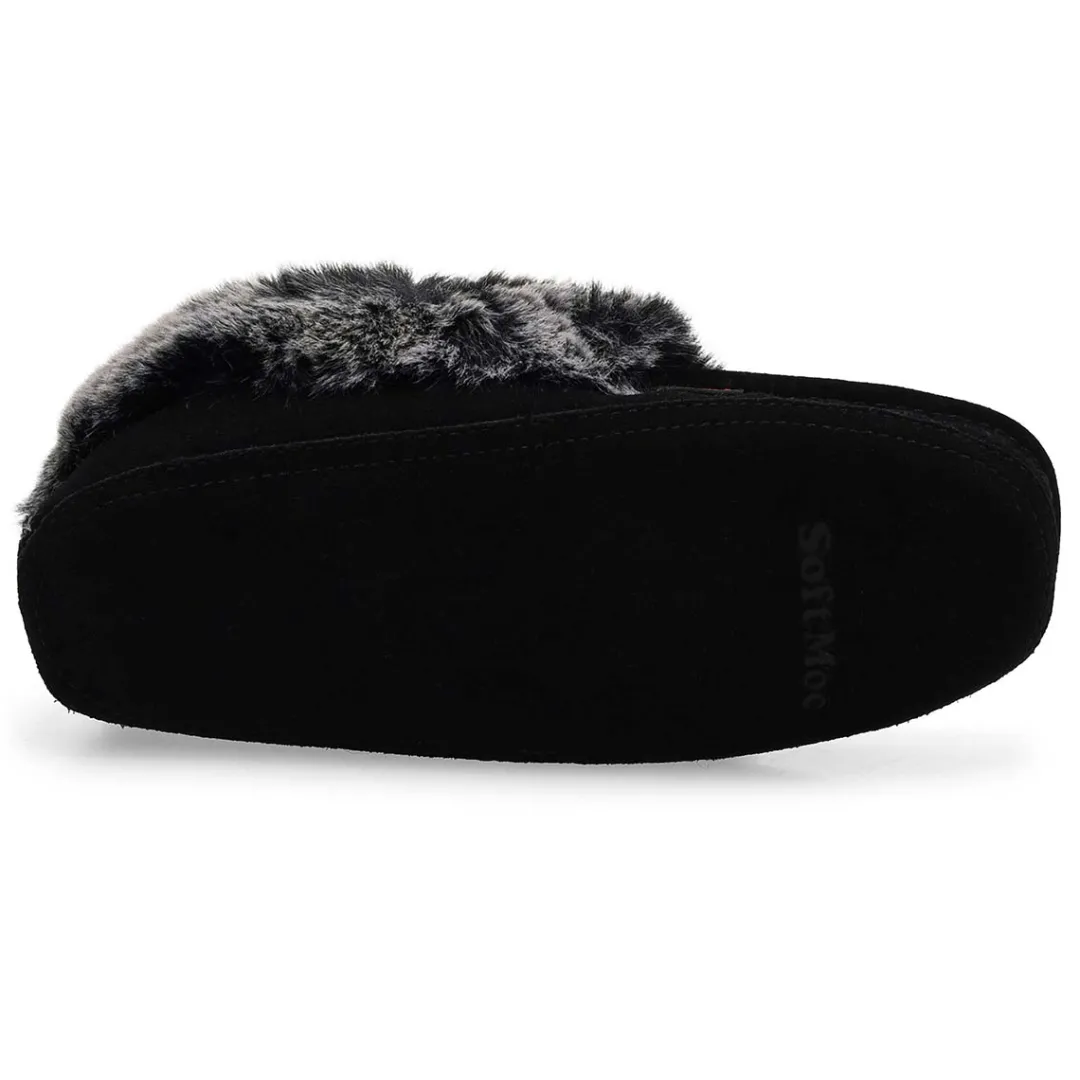 The SoftMoc Punky sand faux rabbit fur SoftMocs features a suede upper collared with faux rabbit fur. The Punky is designed with a combination latex and memory foam insole, giving you rebound comfort. The soft suede outsole is intented for indoor use only. Slight dye transfer may occur during the first few wearings. Style is not made for snow or ice conditions.
