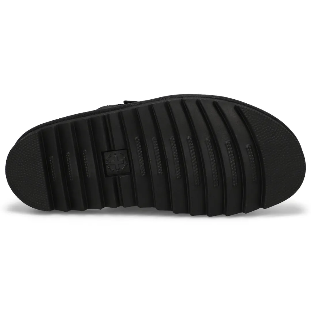 Slide into summer. The Raine black slide sandal from Dr.Martens combines a slider easy on/off convenience with Dr. Martens’ lightweight EVA Zebrilus sole and a comfortable SoftWair footbed. The upper has 3 adjustable Ripstop straps to help you find the perfect fit. The sole is marked with grooving and secured with Dr. Martens’ yellow welt stitching.