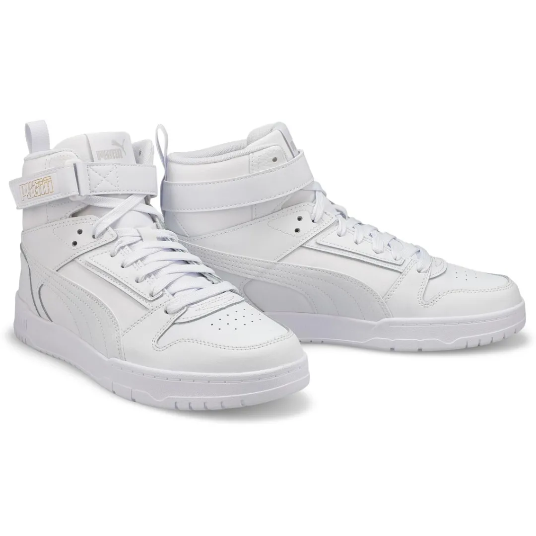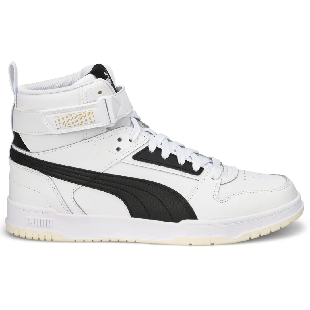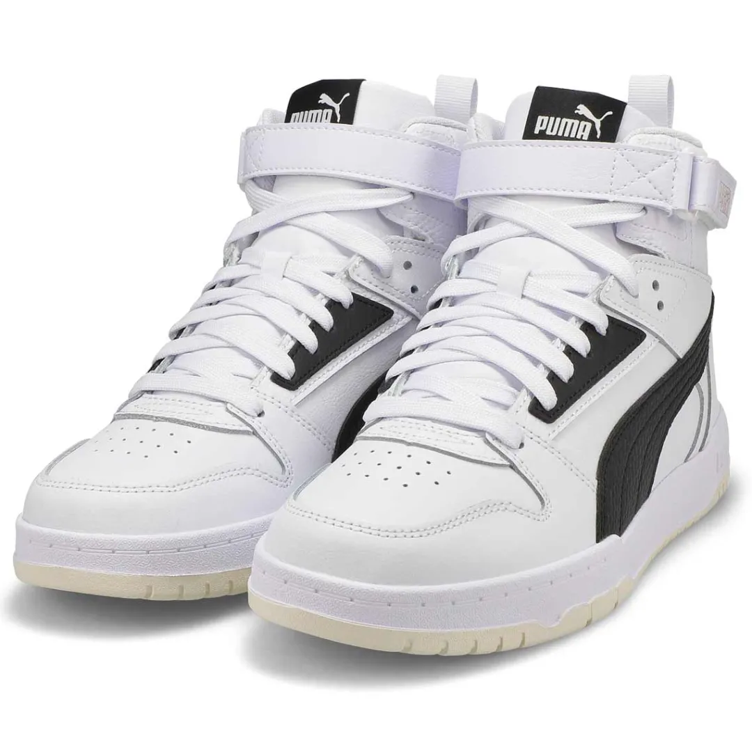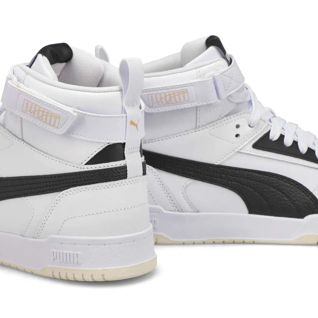 Drawing inspiration from basketball, classics and pop culture, these RBD Game High Top Puma sneakers are here to shake up the status quo. Whether on the court or hanging out with friends, these game-changers are easy-to-wear, complete with an upper featuring soft tumble leather material and a hook and loop closure on top. Walk through life in style and comfort thanks to the superior cushioning of the SoftFoam+ sockliner and the striking duo colors on the retro bottom design.