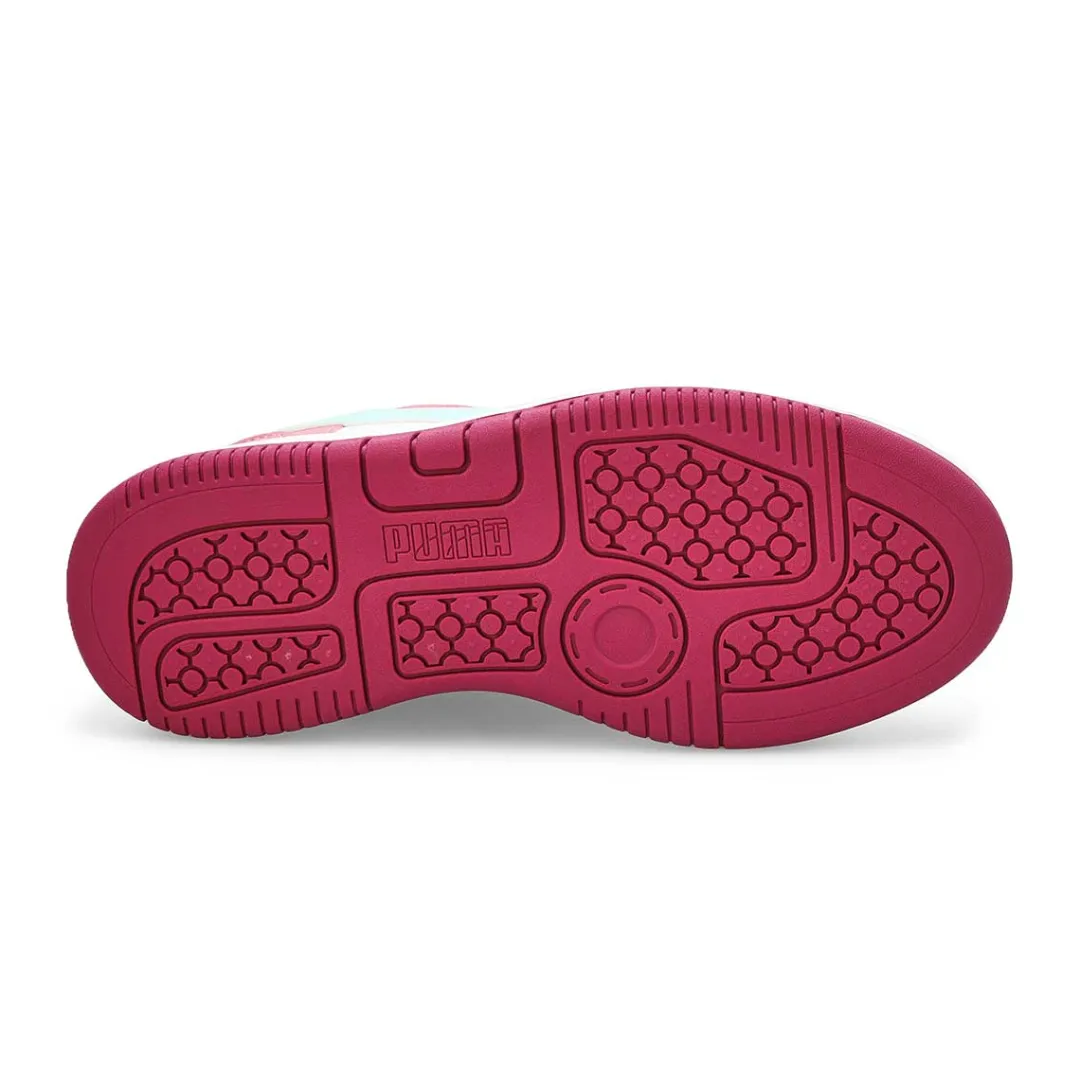 The Rebound Femme Low White/Mint Melt/Poised Pink lace up sneaker from Puma offers a basketball-inspired sneakers that blend retro aesthetics with modern comfort. Synthetic and textile upper with a round-toe design with perforated detail at vamp. Whether you’re seeking a stylish everyday shoe or a performance-oriented sneaker, there’s a model to suit your needs.