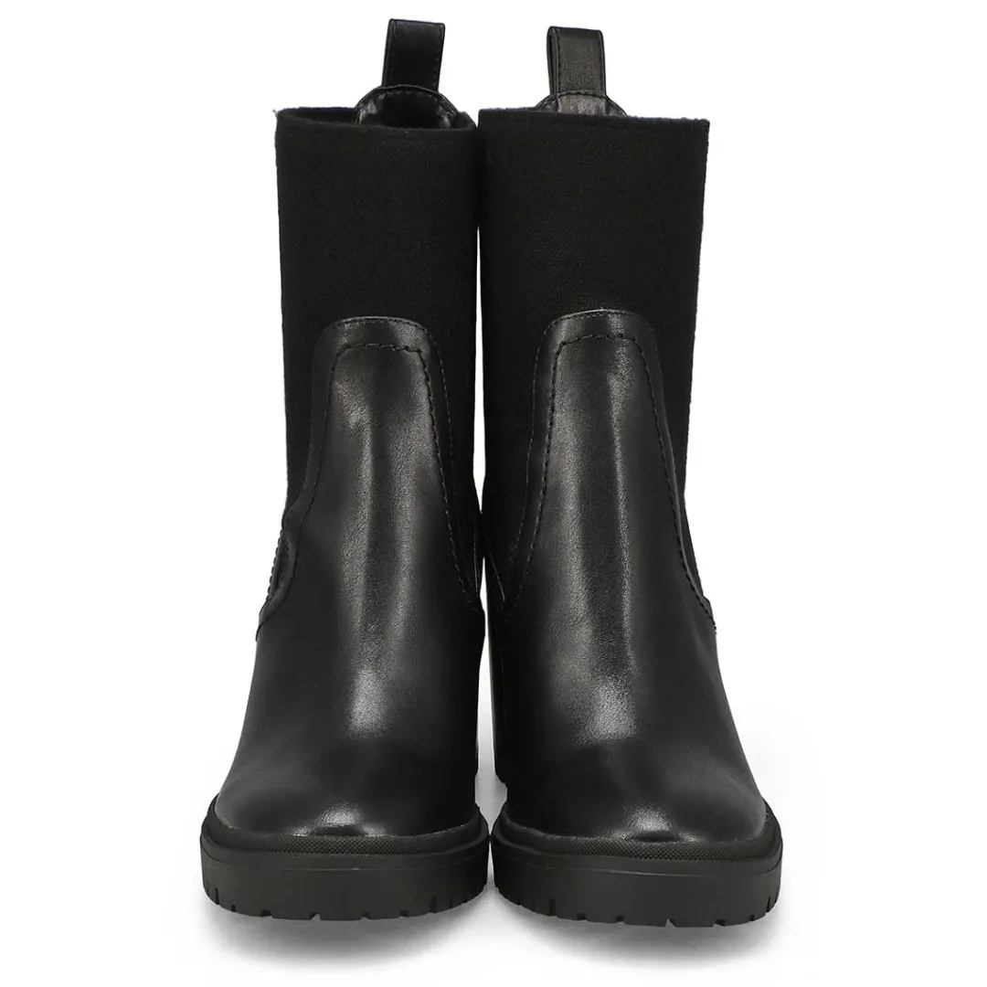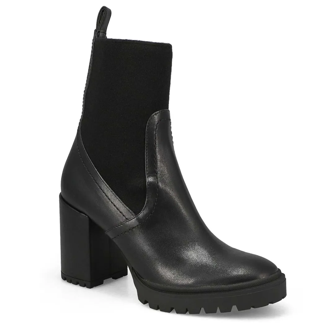 Experience sophisticated style with comfort in the Steve Madden Sahly boots. These heeled Chelsea boots boast a blend of manmade upper and textile lining for comfort and support. These pull-up boots have a high heel that not only adds a touch of elegance to any outfit, from skirts to pants and everything inbetween. These round-toe boots have lugged synthetic outsole for secure footing.