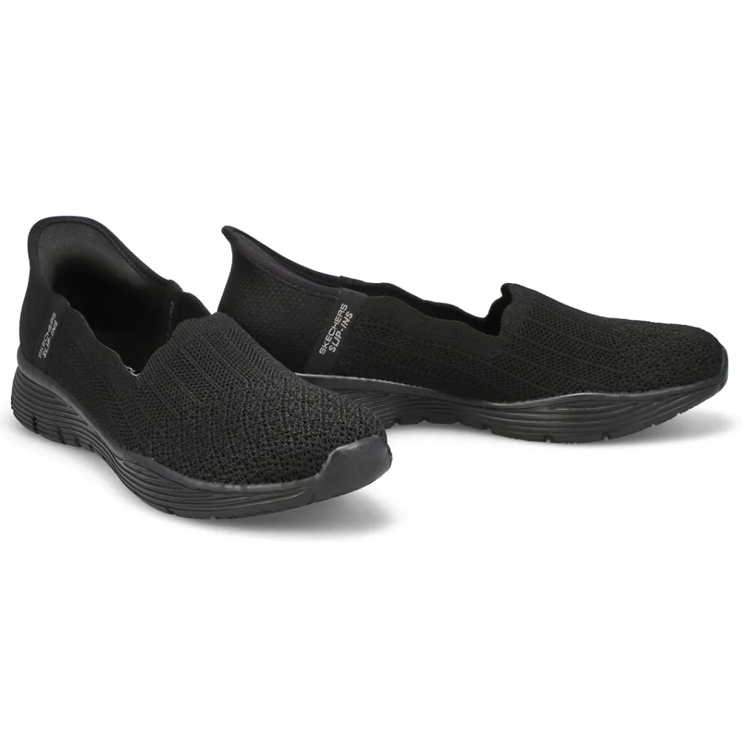 Make the call for sleek and versatile comfort in Skechers Hands Free Slip-ins Seager dark taupe shoe. Designed with Skechers Exclusive Heel Pillow to help hold your foot securely in place. This casual style features a Stretch Fit engineered knit upper with scalloped trim and a cushioned Skechers Air-Cooled Memory Foam insole.