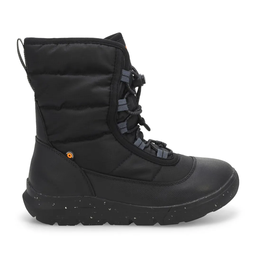 The Skyline Snow Waterproof black Winter Boot from Bogs give your offspring the super-human ability to have fun no matter how low the temperature gets. With a -22F/-30C temperature rating, these’ll make even the nastiest weather look like child’s play. Snowmen, snowballs, and snow angels not included. DuraFresh natural bio-technology activates to fight odors. 200g Insulation.