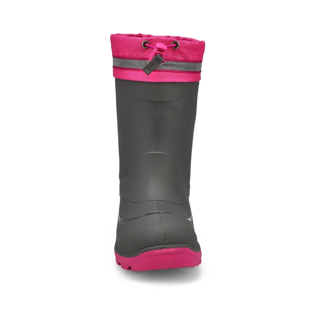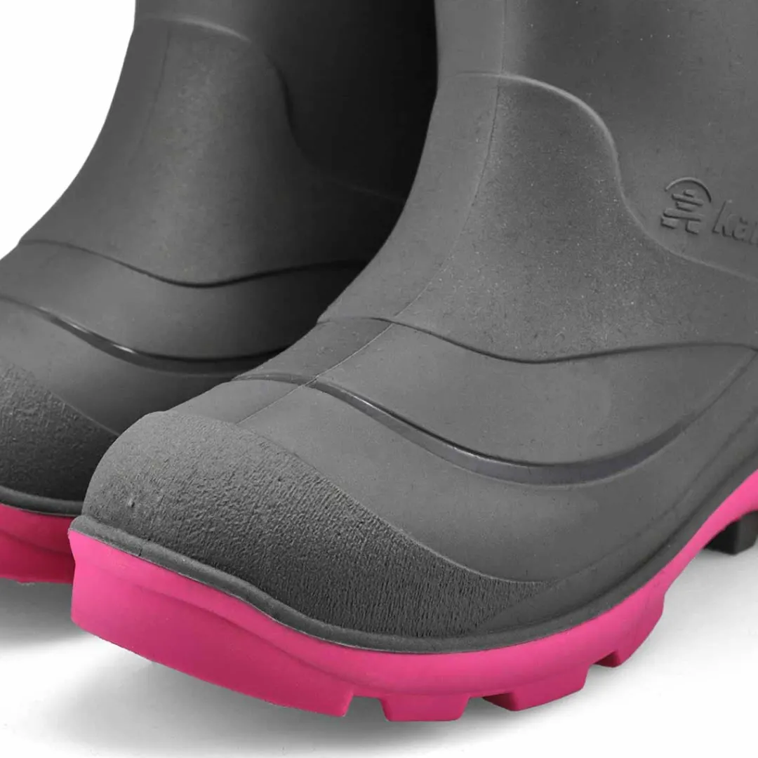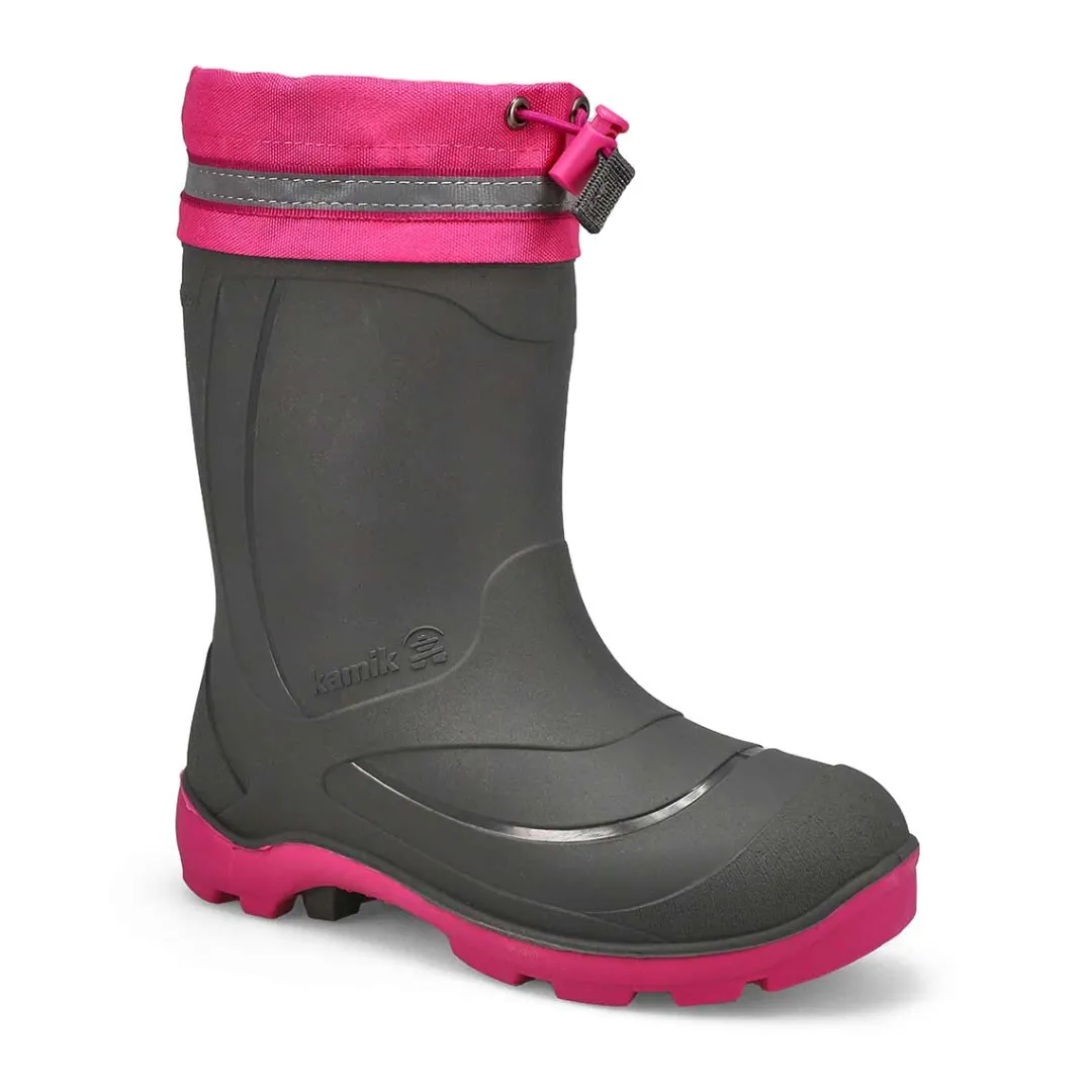 The Snobuster 3 black waterproof winter boots from Kamik are ready for deep snow and slippery winter terrain. Constructed with a lightweight synthetic RubberHe outsole and upper, this Canadian footwear provides great grip, making them ideal for family walks in the snowy woods to a fall fishing trip! Proprietary technology offers traction and increased flexibility. Made in Canada.