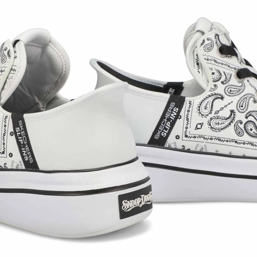 Step into another level of comfort and the flavor of Snoop with the Skechers x Snoop Dogg collection – sneakers for all walks of life. Skechers x Snoop Dogg: Premium Leather Slip-ins Snoop One – Double G. This OG court-style sneaker is on it with a Skechers Hands Free Slip-ins molded heel panel (love that Heel Pillow), a smooth premium leather upper in an allover paisley print, and stretch laces. Just Slip In Snoop style.