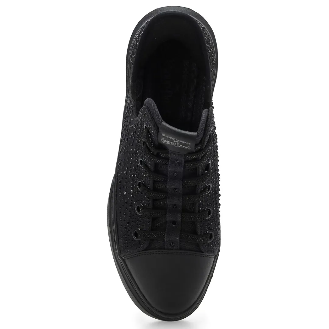 Step into another level of comfort and the flavor of Snoop with the Skechers x Snoop Dogg collection – sneakers for all walks of life. The Skechers Hands Free Slip-ins x Snoop Dogg: Snoop One -Rhine-Stoned is designed with Skechers’ exclusive Heel Pillow, this flossed-up version of the Snoop One features a rhinestone and studded canvas upper with metallic midsole trim and hands-free wearability that you can Just Slip In to, Snoop Style.