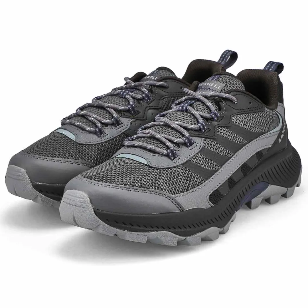 The Speed Strike 2 rock lace up shoe from Merrell provides the comfort and protection of a hiking shoe, while also delivering a faster, more athletic style than traditional hikers. Packed with 100% recycled materials from the laces and webbing to the mesh lining and footbed cover, as well as a 50% recycled removable EVA foam footbed, all atop of a Merrell sticky rubber outsole with durable traction that grips when and where you need it.