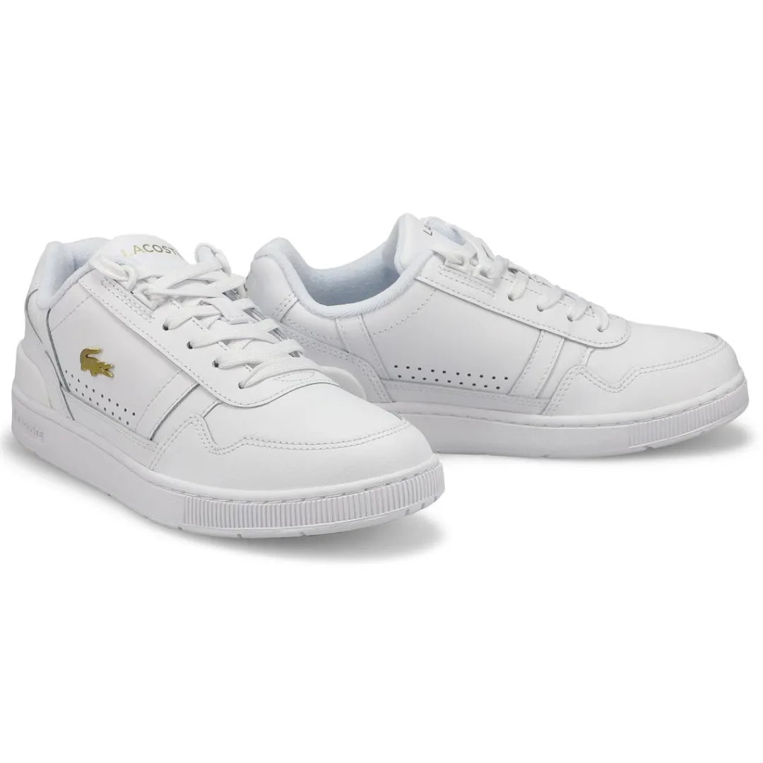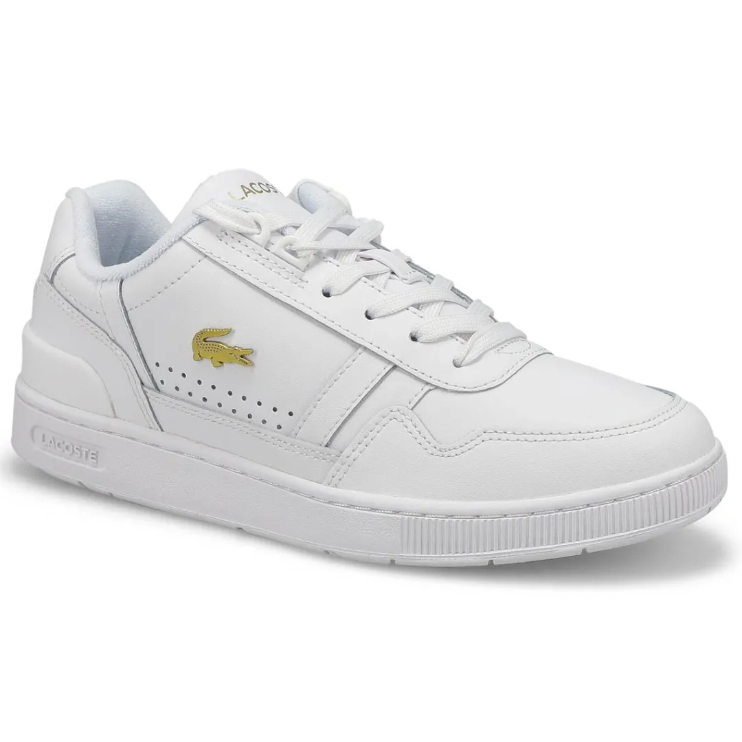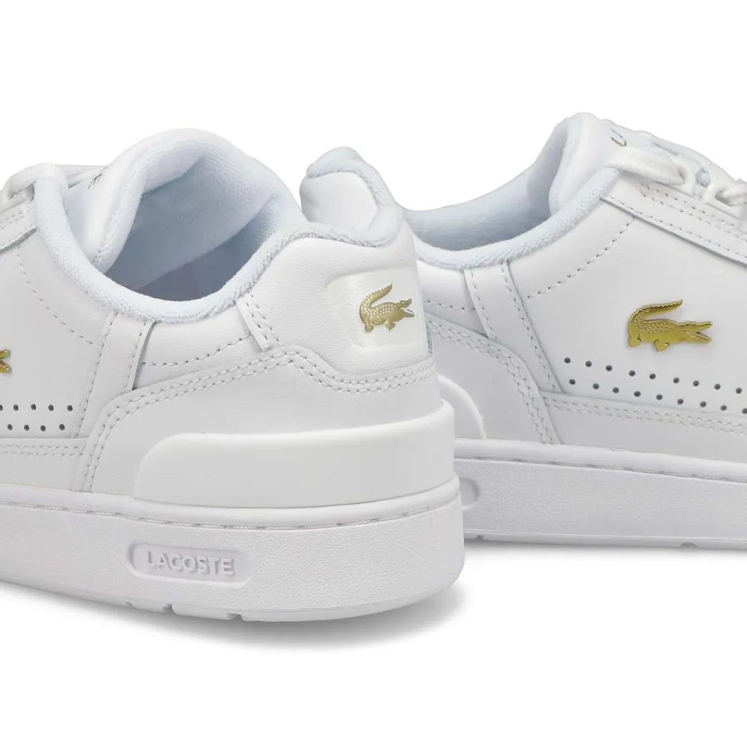 The T-Clip takes the timeless silhouette of the Sideline court shoe and embellishes it with 80s-inspired detailing. The smooth leather uppers are presented in a neutral colour palette, and enhanced by placement perforations, textured leather at the heel, and tonal reflective tramlines on the quarter. The linings are made from recycled polyester for a sustainable element. Lacoste lettering on the tongue, and crocodiles on the heel and side, add signature flair.