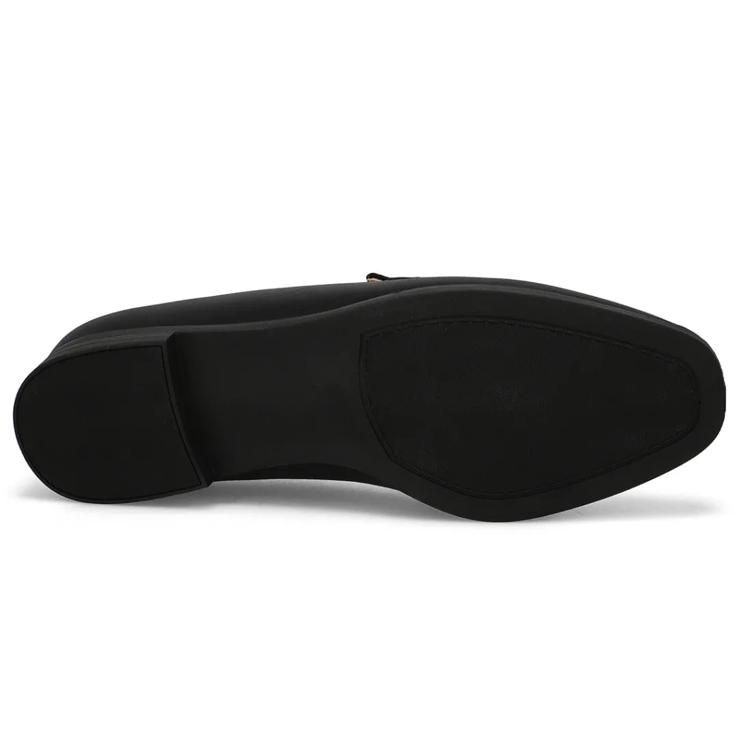 With the striking silhouette design, the Tabitha black flat from Maddison by SoftMoc are sure to bring a contemporary twist to your classic style. Featuring a genuine leather upper with a smooth lining. The Tabitha is designed with a cushioned insole for all day comfort. A classic buckle design styling with a durable TPR outsole.