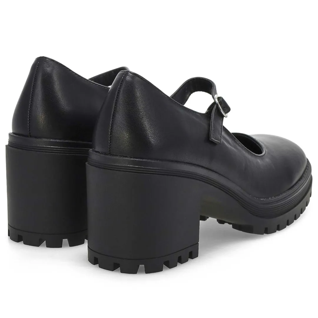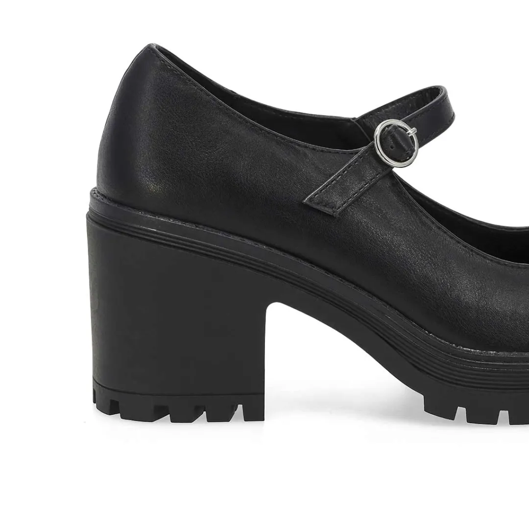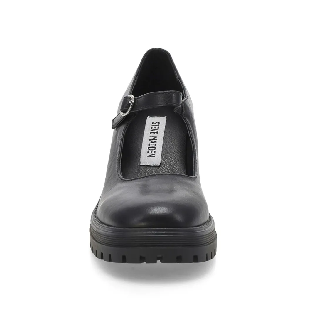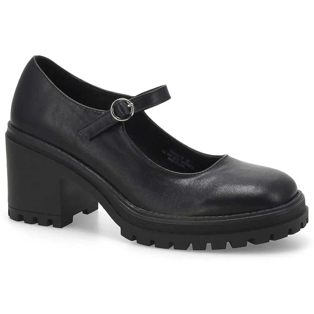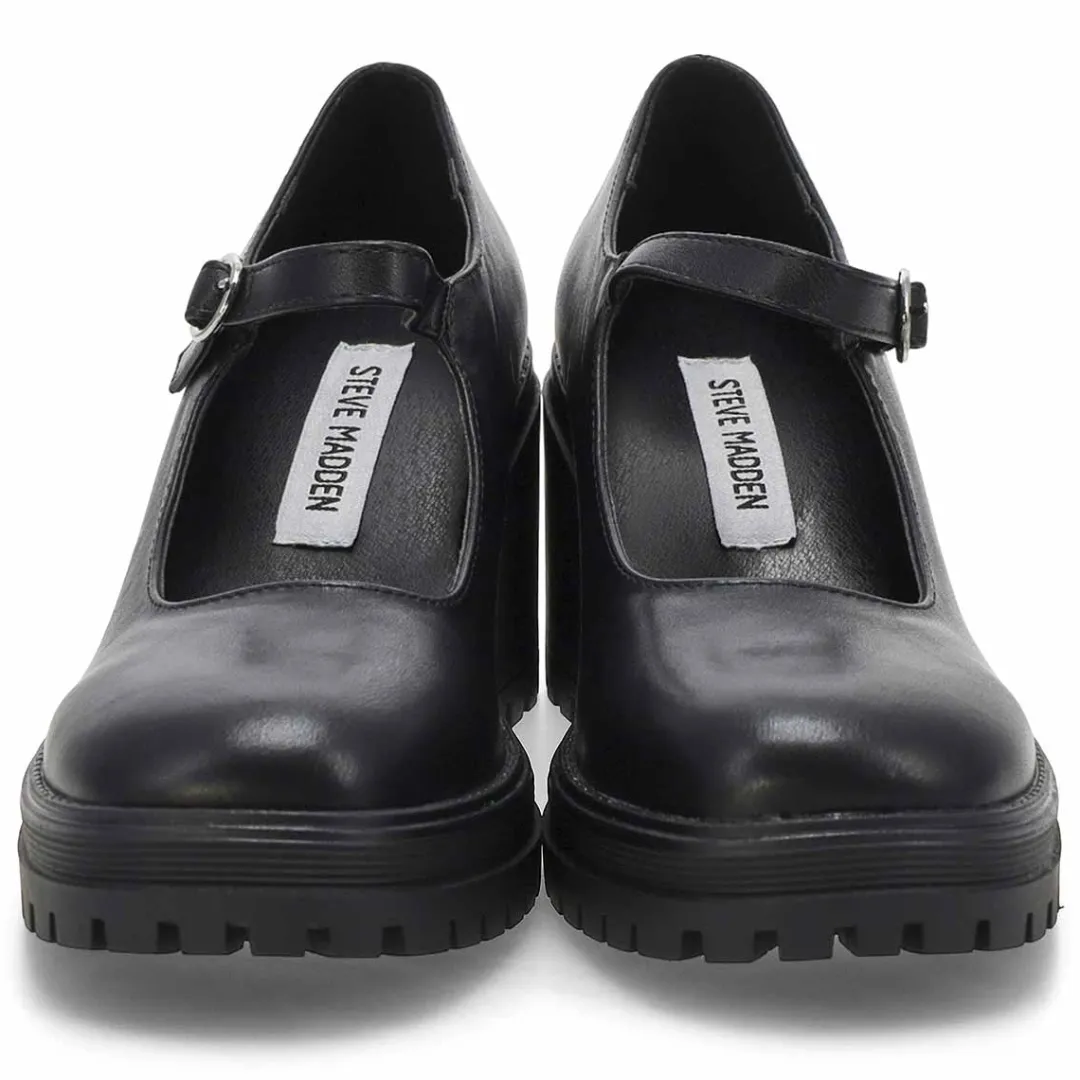 Love the classic Mary Jane style in the Translte black heel from Steve Madden. Crafted in a faux leather upper, these mid heel dress shoes have a traditional round toe front and an adjustable Mary Jane strap with buckle closure for precise fitting. Lightly cushioned footbed. Approx. 2.5 inch heel height.
