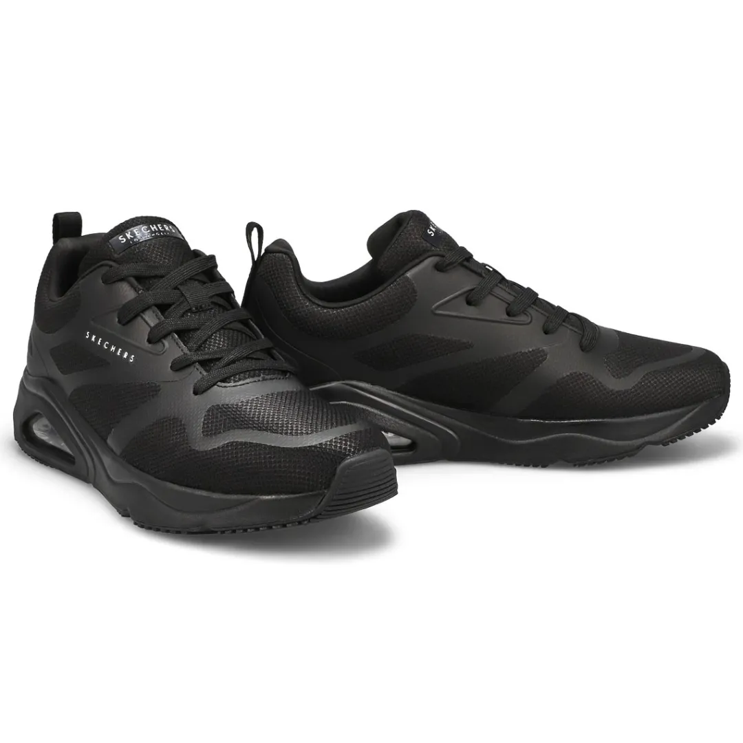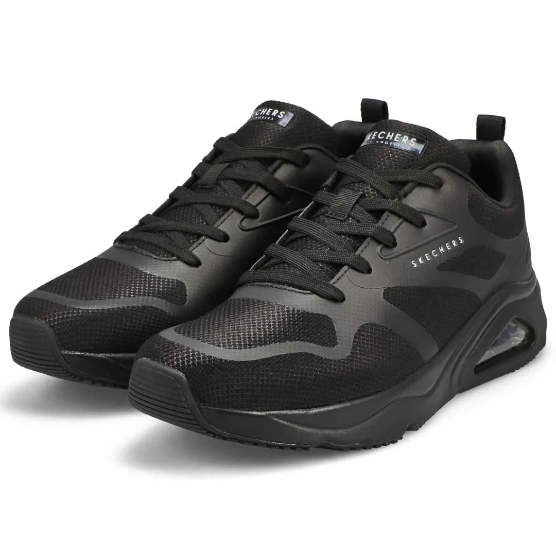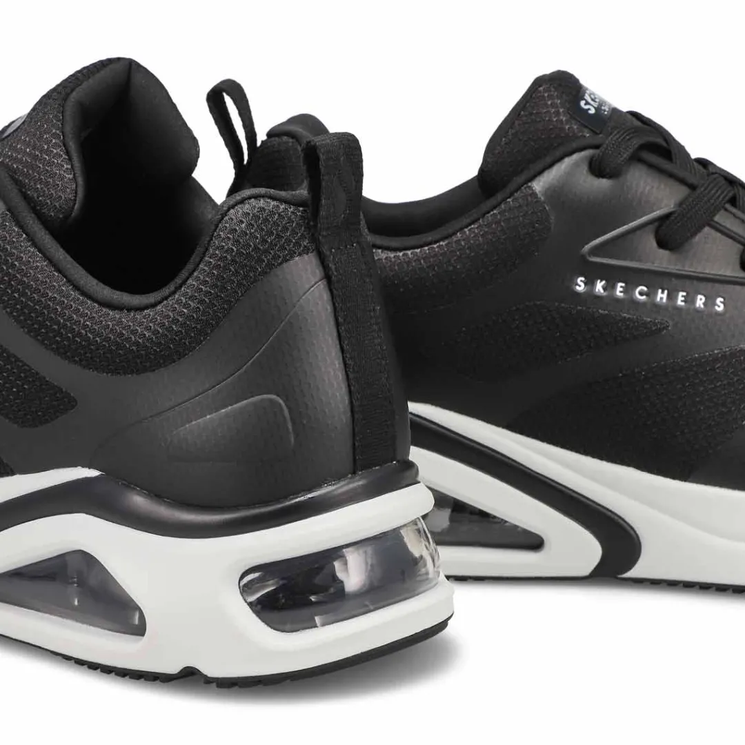 Take your style to the next level with Tres-Air Uno – Revolution-Airy black sneaker from Skechers. This athletic inspired lace-up features a sleek closed mesh upper with hotmelt overlay details, a Skechers Air-Cooled Memory Foam insole and a visible Skech-Air airbag. The Tres-Air Uno-Revolution-Airy Sneaker is designed with a flexible traction outsole.
