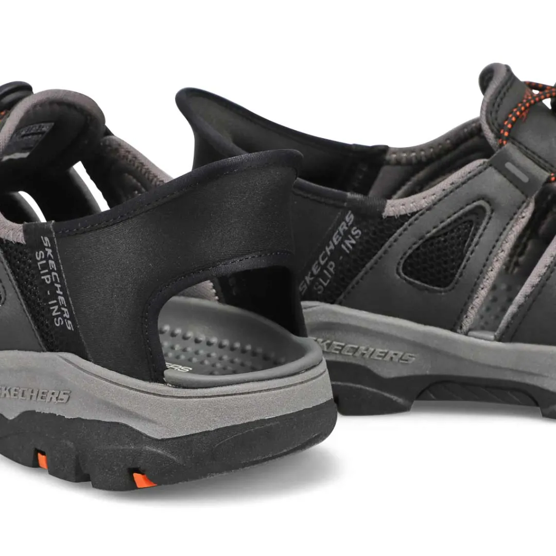 Laid-back style and comfort combines effortlessly in the Hands Free Slip-ins Tresmen Norvick chocolate fisherman sandal from Skechers. Designed with a supportive Heel Pillow, this fisherman style sandal features a synthetic upper with a toggle front, back heel piece and a cushioned comfort footbed. Relaxed Fit for a roomy comfort fit at toe and forefoot.