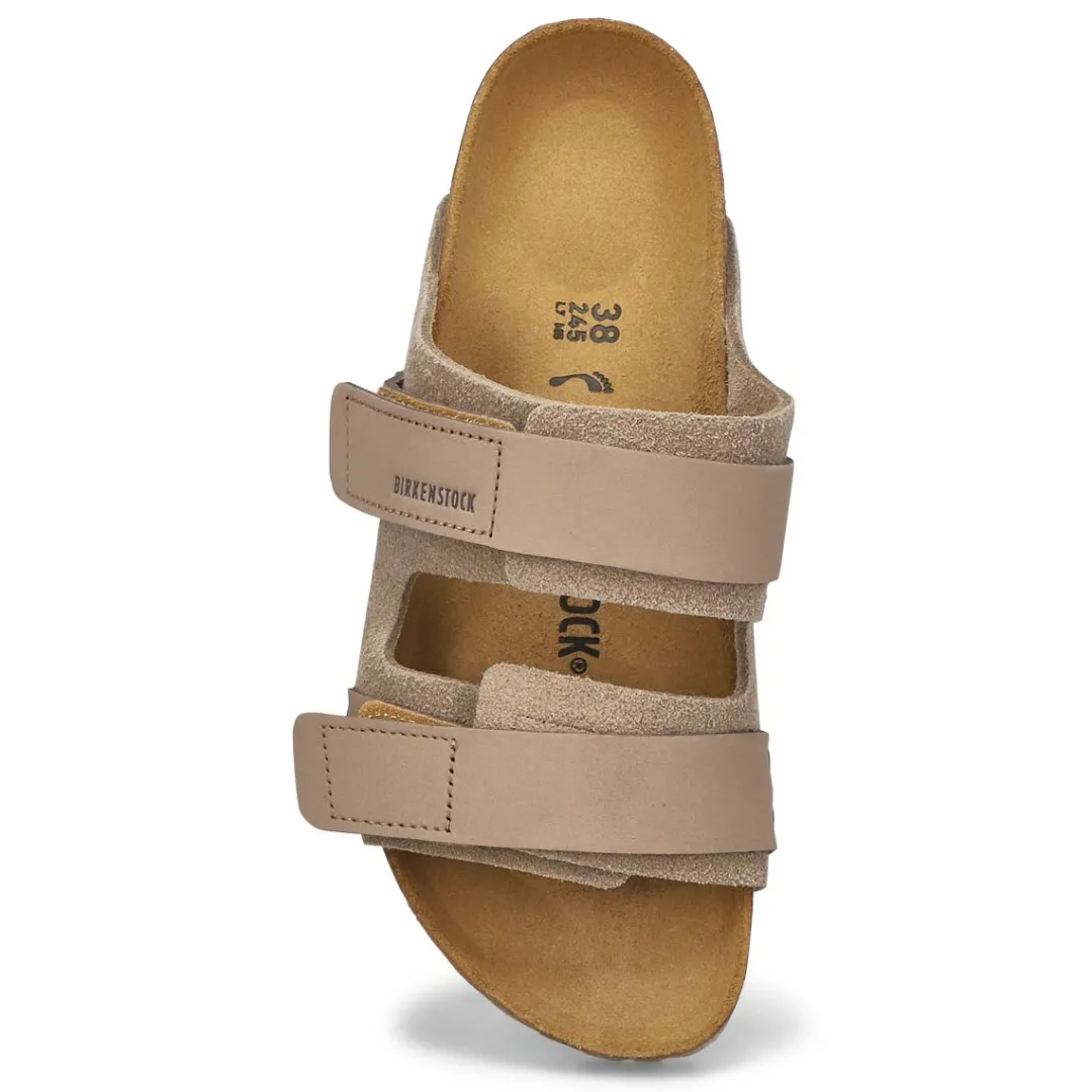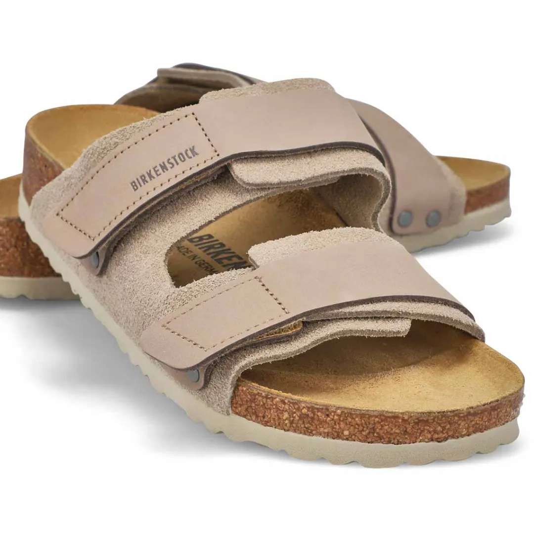 Minimalist-friendly design, maximum comfort. The Uji 2 strap taupe Soft Footbed sandal from Birkenstock features a suede upper that comes together softly over the foot, secured by nubuck hook-and-loop straps for the perfect fit. With an original contoured footbed for support, it’ll feel uniquely yours wherever you take it. Narrow Width.