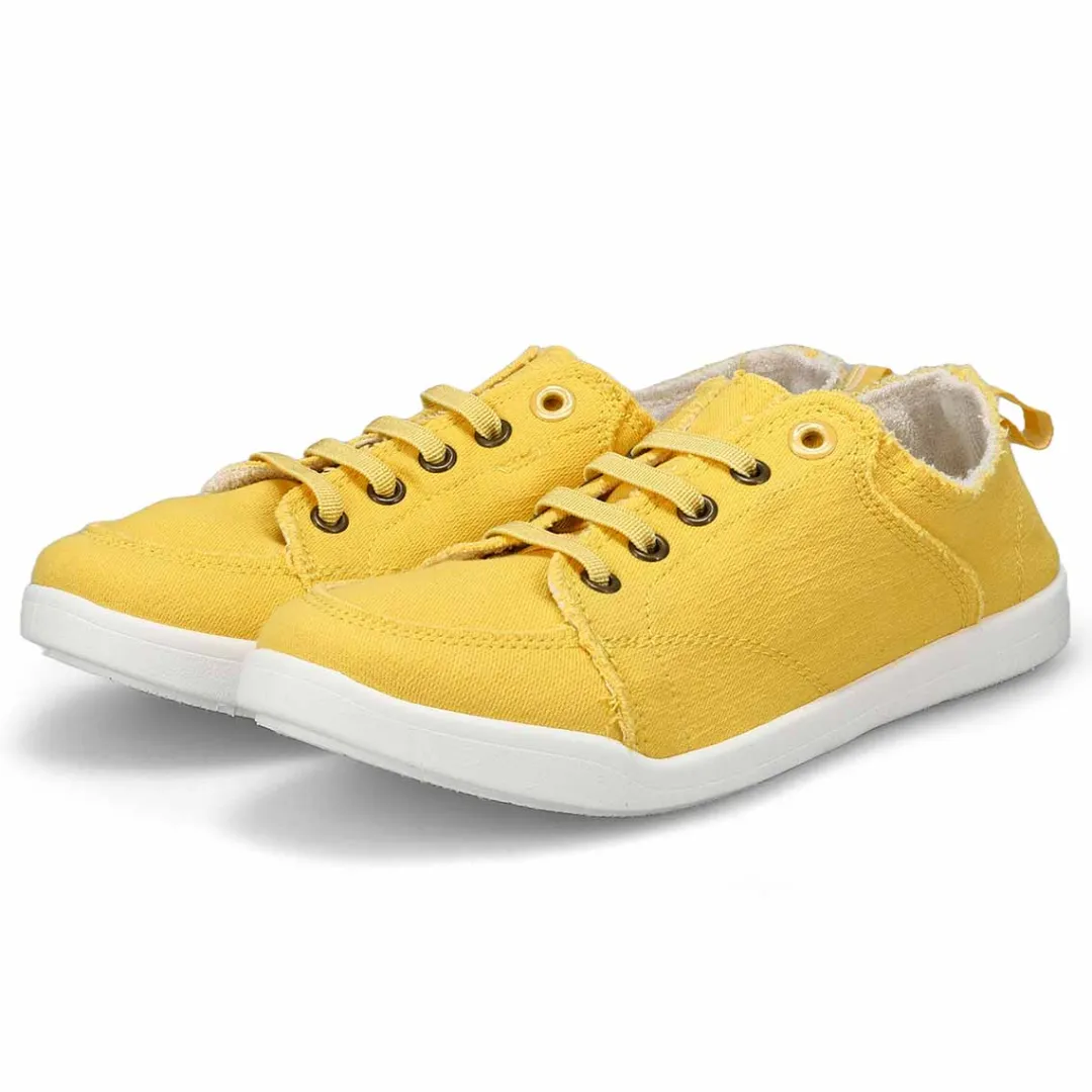 The Venice Pismo butter yellow sneaker from Vionic is a laced up look that you don’t need to tie, this washable slip on is made with eco-conscious cotton. And hey, they’re vegan too. Removable Twill Covered EVA footbed for that all day comfort. Elastic snug fit heel for easy on and off with a durable TPR outsole. Air Dry