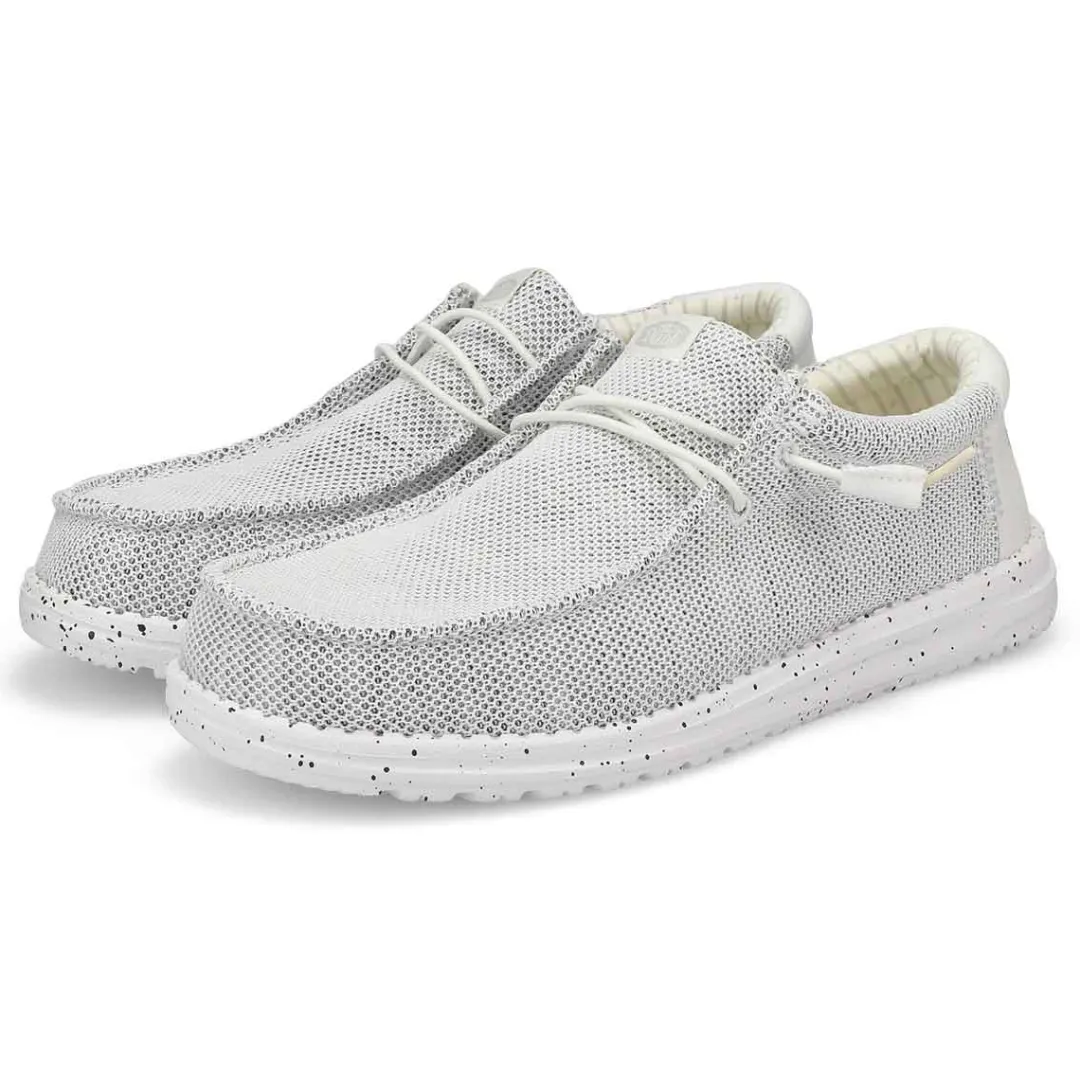 The Wally Stretch Sox casual from HEYDUDE will be an instant favorite in your casual collection. Featuring a linen upper with a round toe design. Low-top, chukka construction with a soft, oxford cloth lining that surrounds the foot in comfort. Memory foam cushioned, removable insole. The Wally Stretch Sox casual shoe is designed with an ultra-light, lugged synthetic outsole.