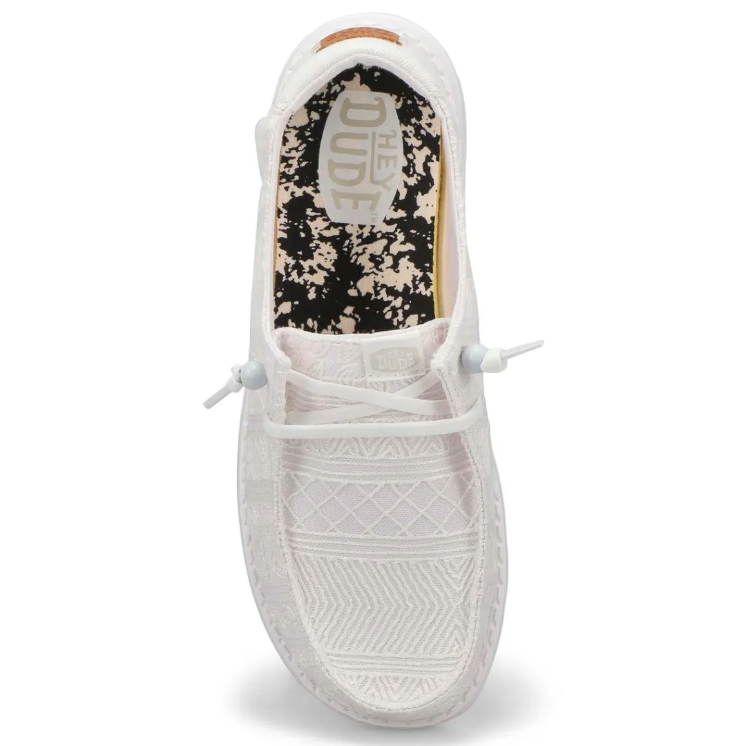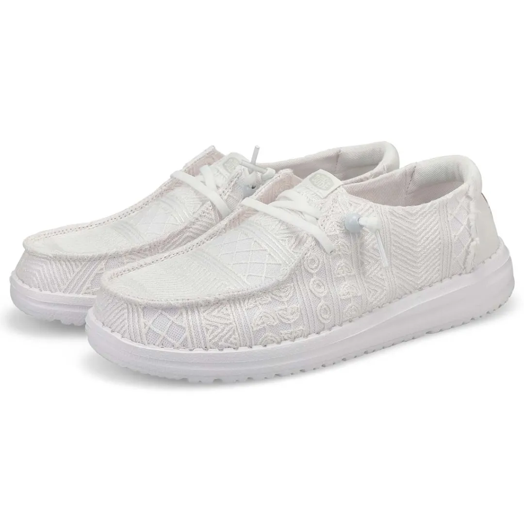 Level up your boho chic with the Wendy Crochet Lace white shoe from HEYDUDE. These flirty go-to’s weave together breezy crochet lace with a touch of fringe flair at the heel. Slip-on and go in effortless style, all thanks to our easy-on system and elastic laces. From strolls on the beach to summer soirées, these kicks will be your new warm-weather bestie.