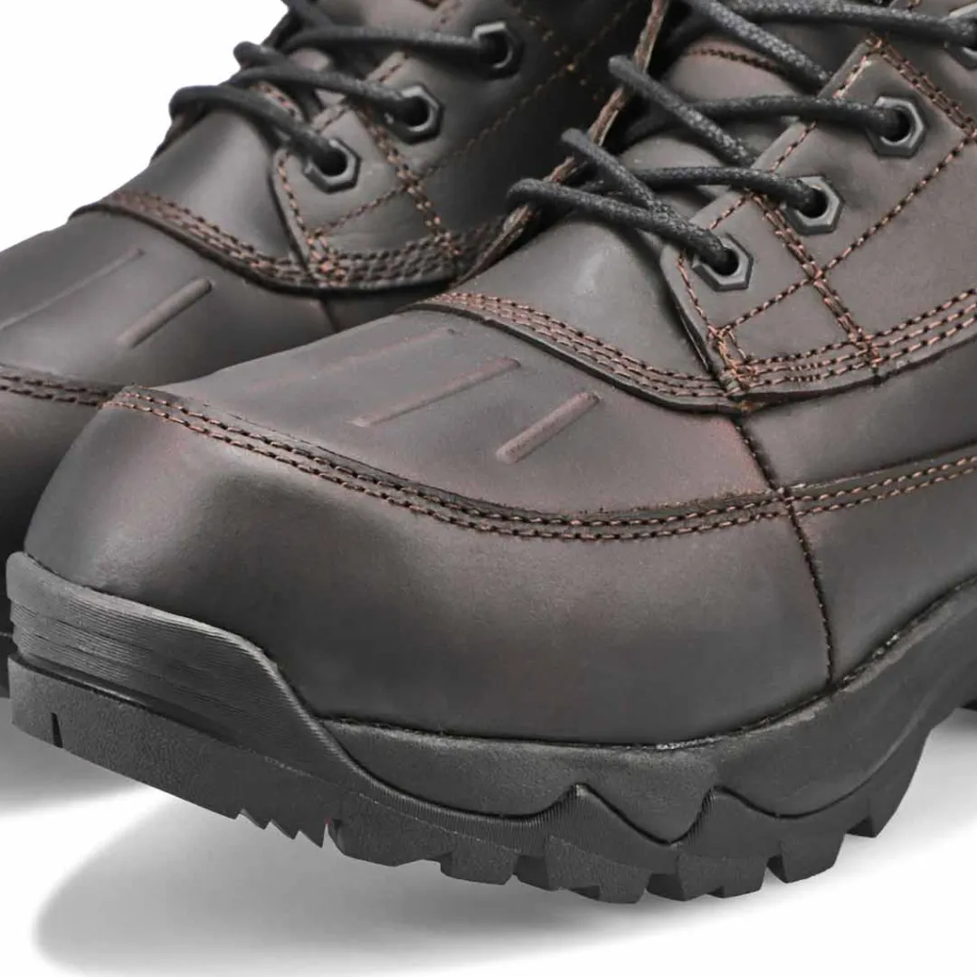 The Wheeler brown waterproof winter boot from B&B By SoftMoc will not only keep you warm and dry, it will also keep you looking great. Featuring a leather upper in a waterproof construction design. 400g of Thinsulate lining for added warmth. SM-ICE slip resistant outsole for great durability. Pods built into the sole made from fibreglass technology helps sticks to ice. You will want to make the Wheeler winter boot part of your must-have list for this seaon!