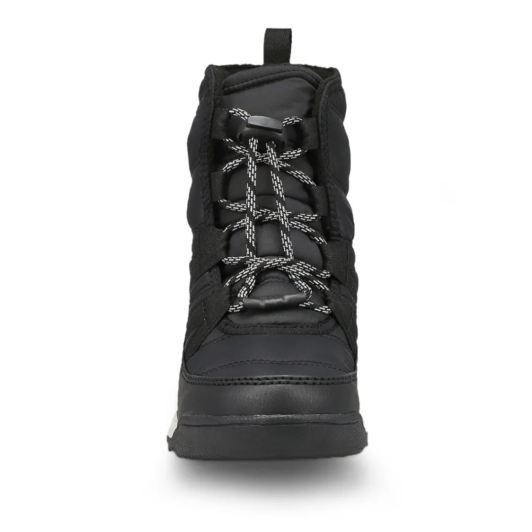 Warmth and unparalleled waterproof protection meets a sporty short boot they can wear anywhere. The Whitney II Plus snow boot from Sorel features a sleek, baffled waterproof textile upper with a waterproof-breathable membrane, as well as 200g insulation to keep your feet warm when you’re walking through a winter wonderland. A soft fleece lining and plush faux-fur trim dial up the cozy factor even further.