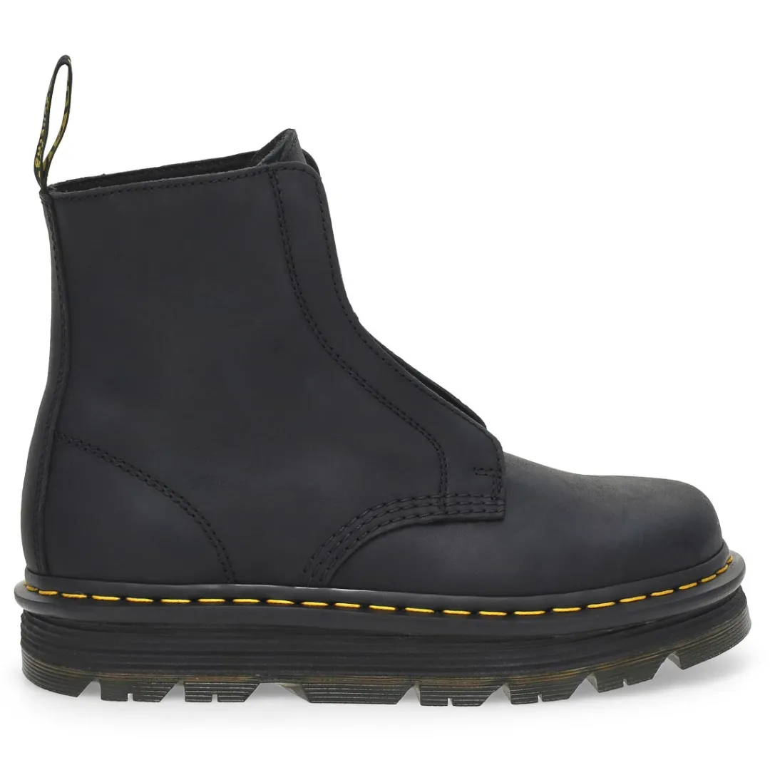 Easy comfort, easy go. The Zebzag Rigger Puul On Boot from Dr. Martens has a silhouette inspired by industrial footwear — rebuilt for easy living and even easier styling. Made with rugged Wyoming leather with dual pull tabs on either side — so you can pull on and head out. The ergonomic Zebzag sole combines lightweight EVA and durable PVC to give your feet an easy ride without limiting your destination.