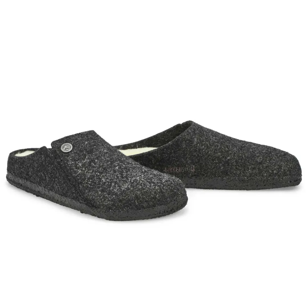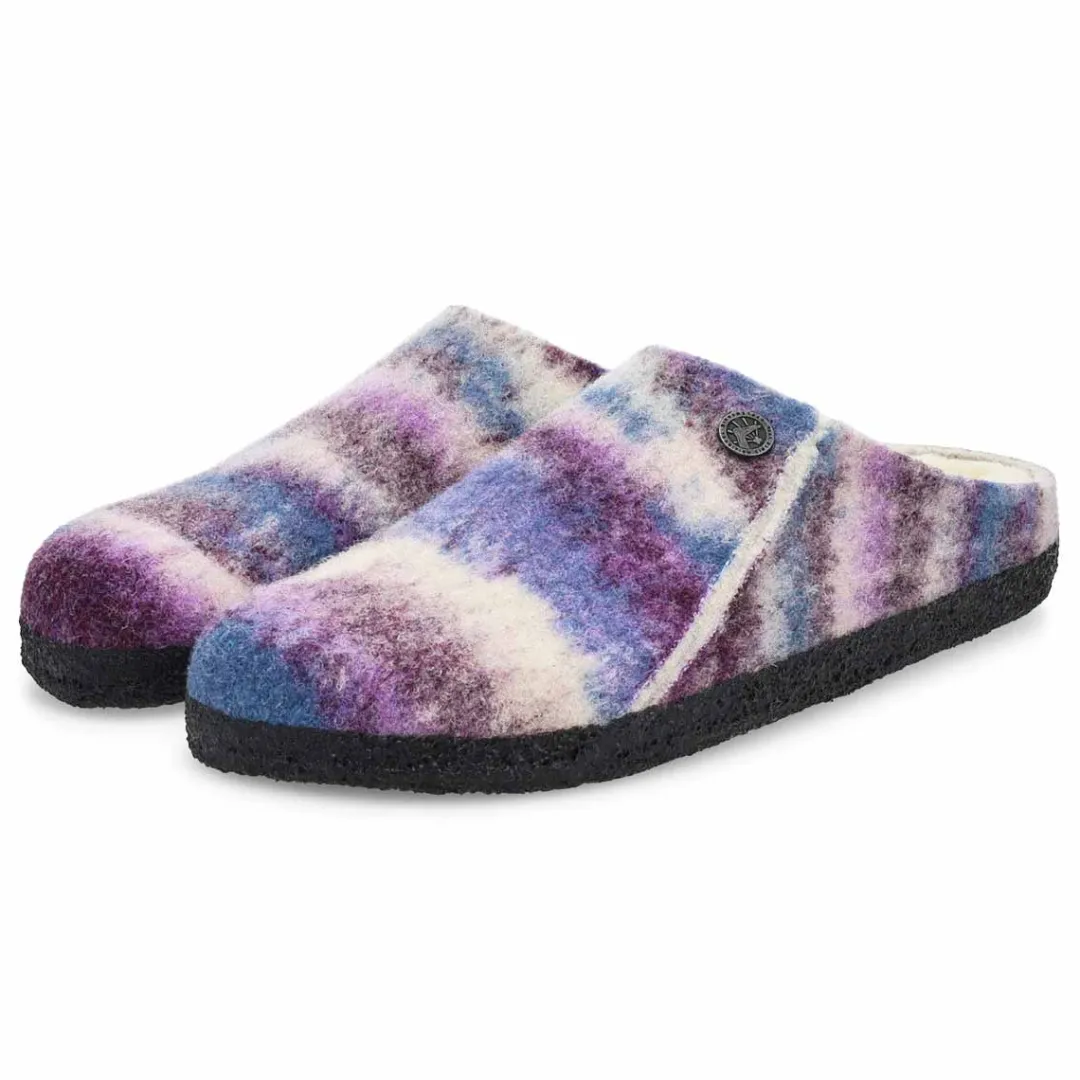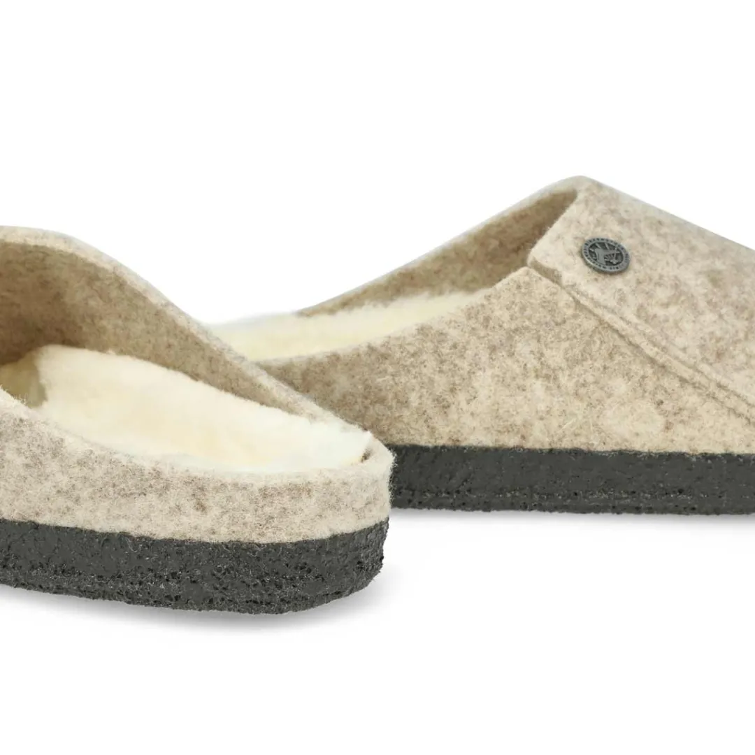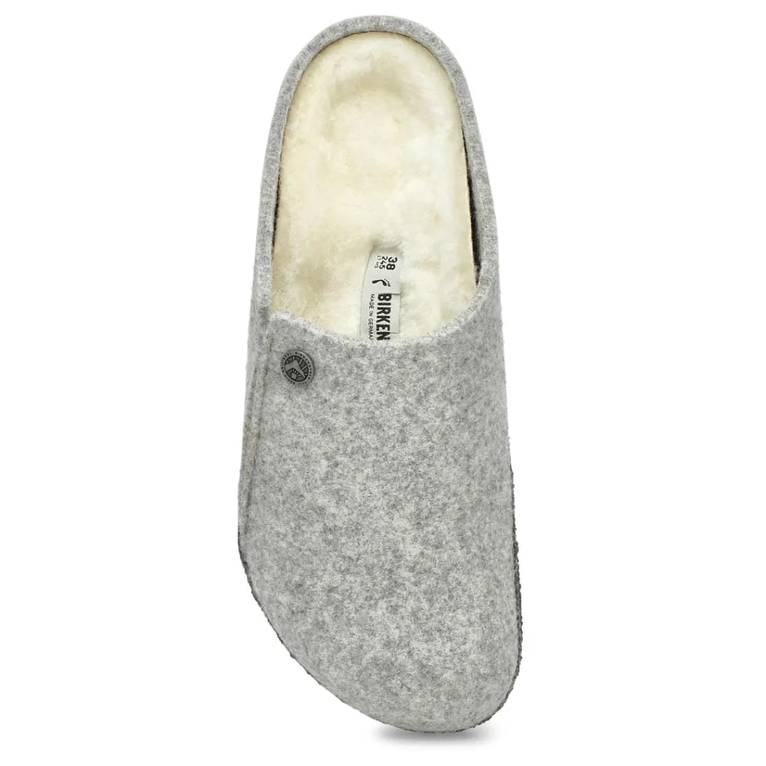 Winter or summer slipper? The Zerrmatt shearling slippers from Birkenstock is both! To ensure that you can safely potter round the house all year, the sole is dipped in latex using a special process, which makes it flexible and gives it slip-resistant properties. Featuring a wool felt upper. Removable, anatomically shaped cork-latex footbed. Narrow width