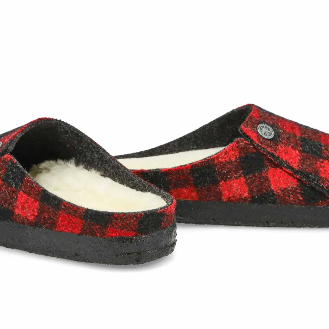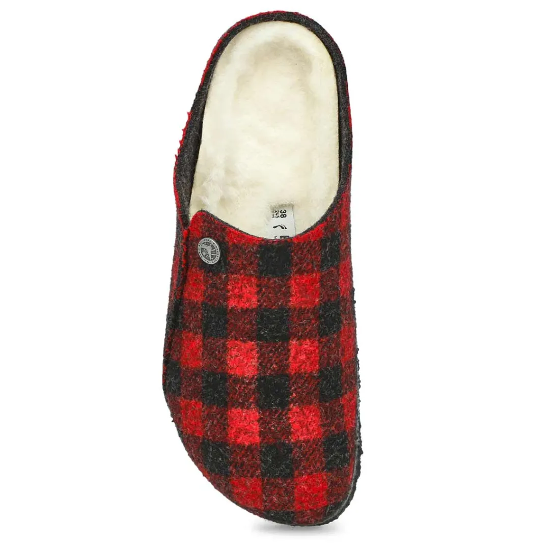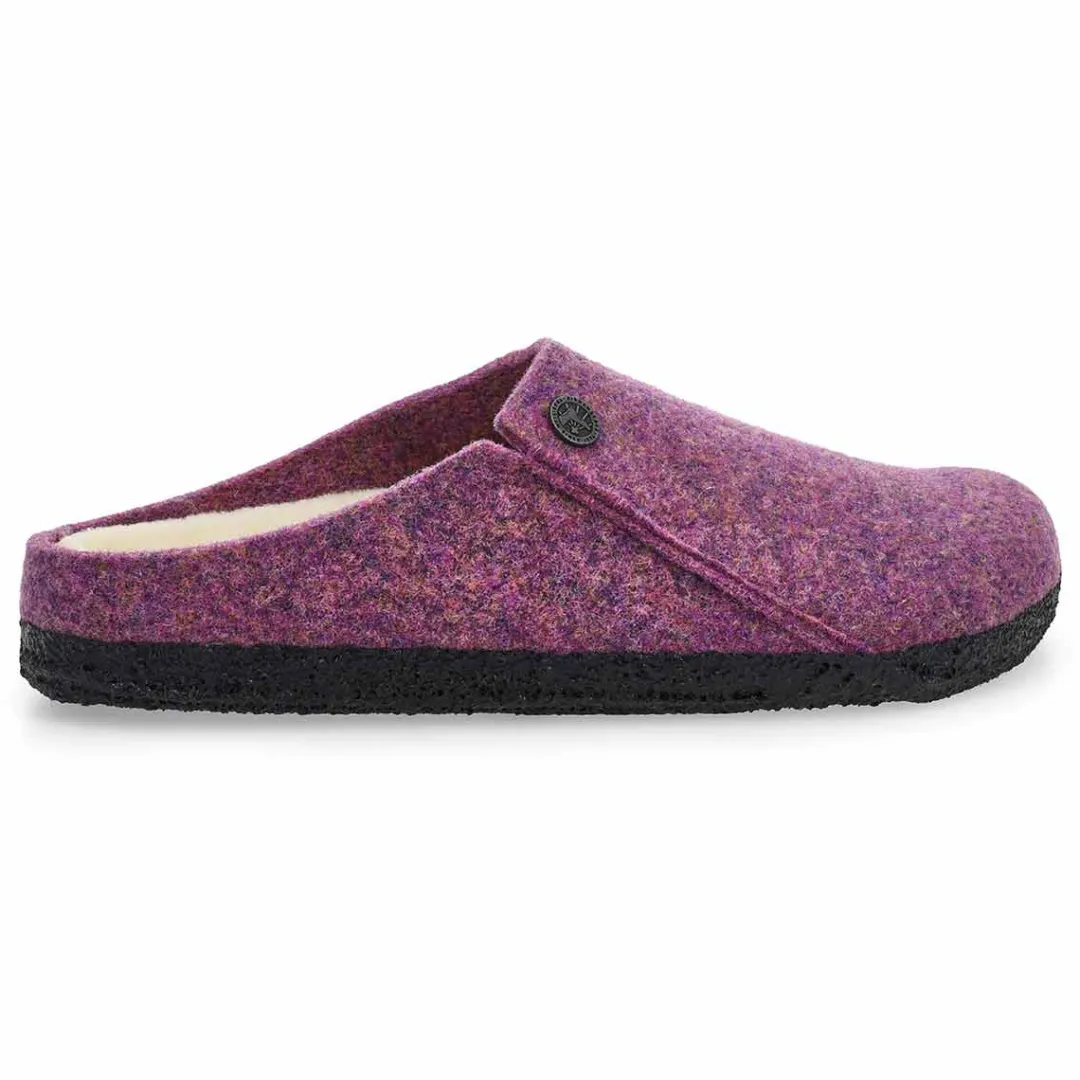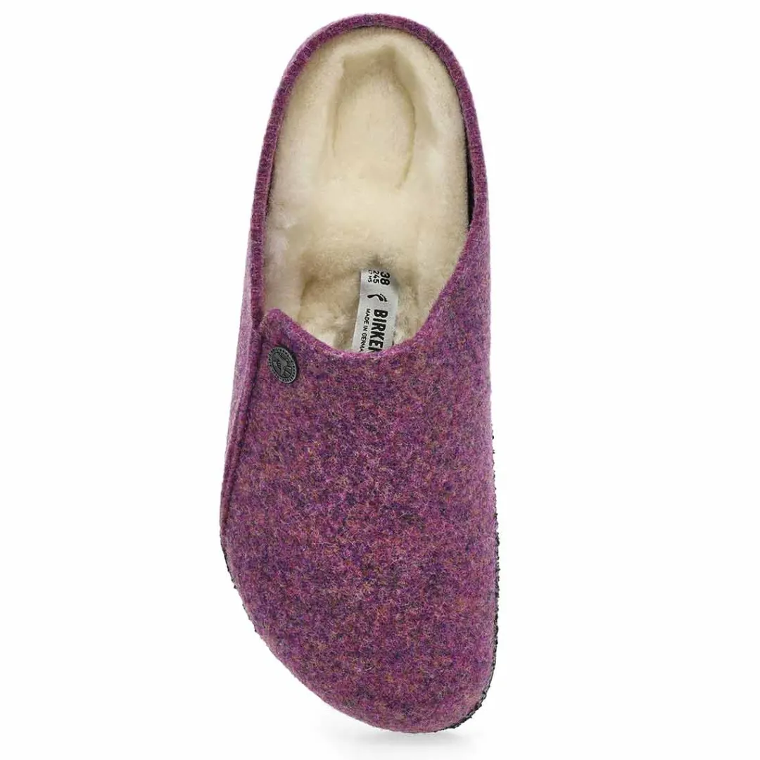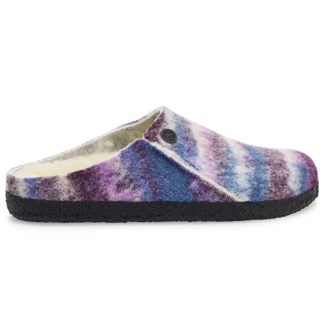 Winter or summer slipper? The Zermatt dyed stripes mauve shearling slippers from Birkenstock is both! To ensure that you can safely potter round the house all year, the sole is dipped in latex using a special process, which makes it flexible and gives it slip-resistant properties. Featuring a wool felt upper. Removable, anatomically shaped cork-latex footbed.