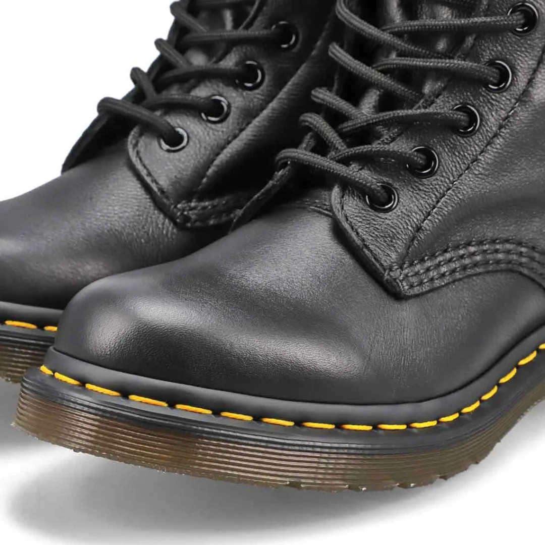 The Core Pascal retains all the history and tough-girl durability of the original, iconic 8-eye — and all the DNA, like a scripted heel-loop, visible stitching and grooved edges on an air-cushioned oil and fat resistant sole. Made from Virginia, a grained leather that feels worn in from the first step, these boots stay true to their six-decade-old construction with yellow welt stitching, a scripted AirWair heel loop and a tough air-cushioned outsole.
