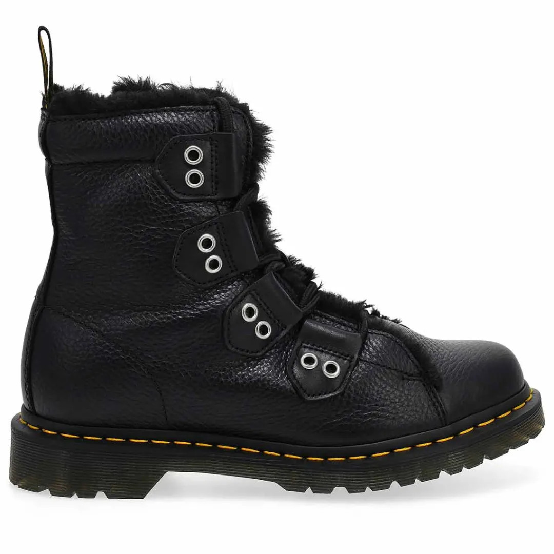 Here to stir everything up, Dr. Martens’ new 1460 Ghillie boot reimagines their Original silhouette with a statement lace-to-toe construction and oversized laces. Built from Milled Nappa leather, the boots are welted on a rugged BEN outsole secured with our unmistakable yellow welt stitching. The hiker aesthetic is rounded off with hardware trims on the Ghillie laces and a warm faux fur lining. Winter boots, remixed.