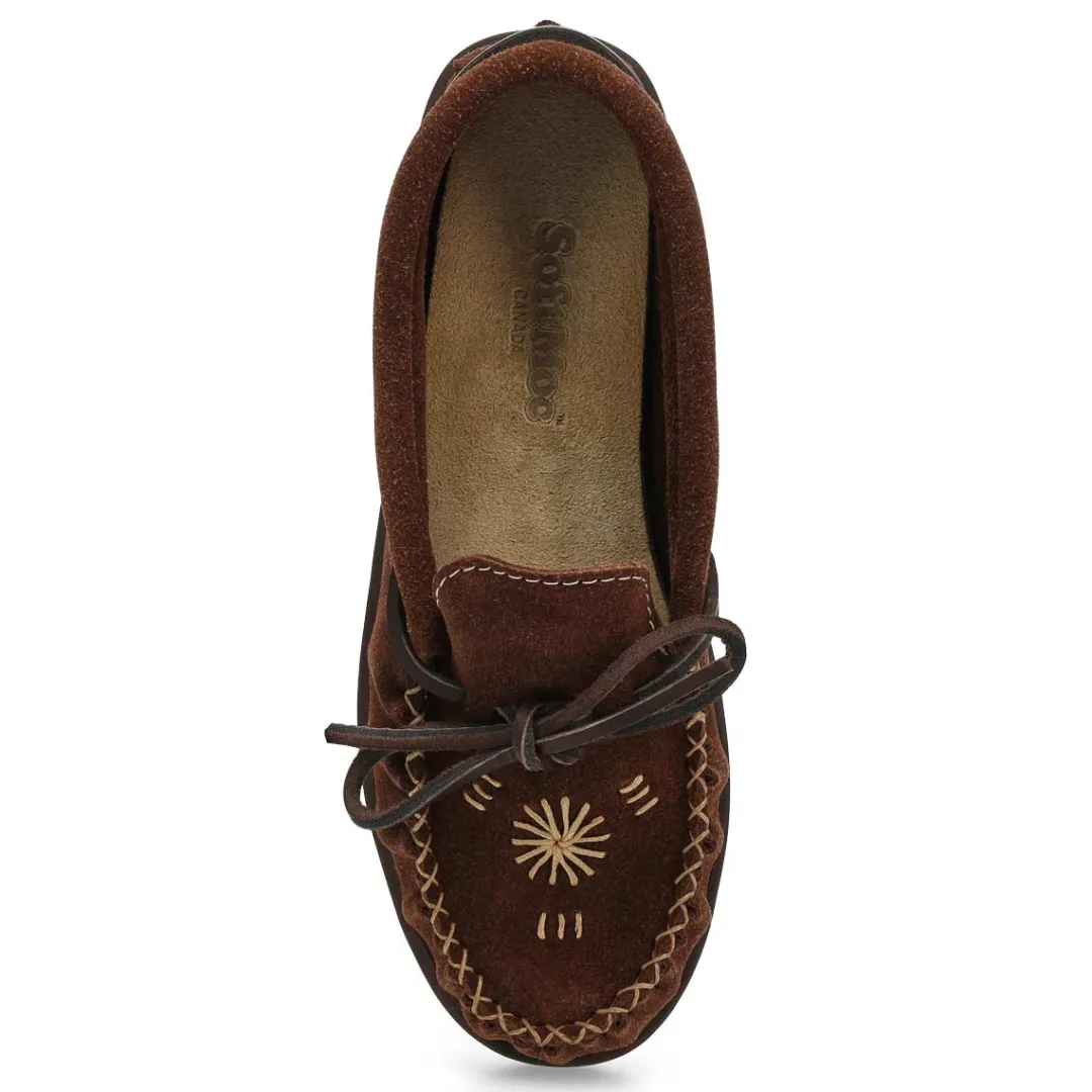 You will love the comfort provided by the 2672 chocolate suede SoftMocs from SoftMoc. The perfect gift for someone special, or just a treat for you ! Memory foam cushioned insole for added comfort. Handstitched front with a TPR outsole for durability. Beautiful suede upper with beading detailing. Made in Canada.