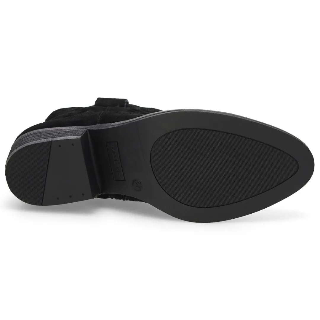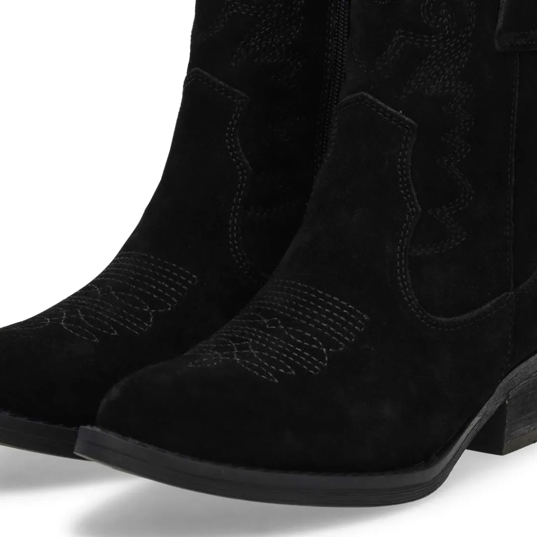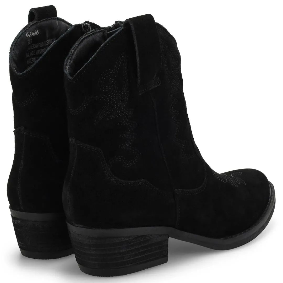 Step into effortless Western charm with the Aaliyah dark brown Ankle Western Boot from Maddison by SoftMoc. Imagine the soft suede embracing your foot, the mid-calf silhouette enhances your style. With a sturdy block heel, and easy inner zip closure, these booties combine comfort and confidence. Perfect for making every outfit unforgettable!