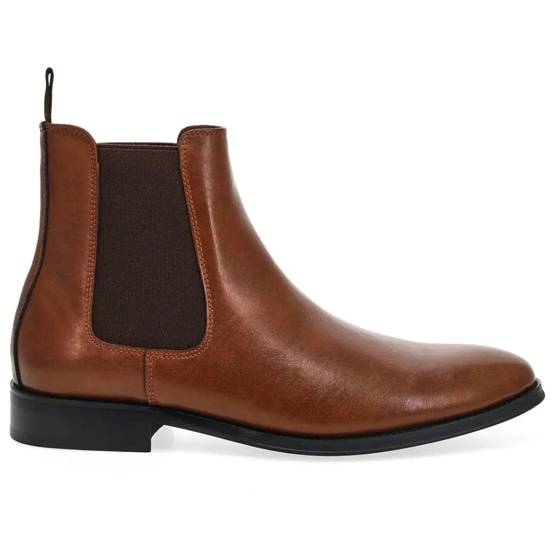 Walk in the Aldair leather tan chelsea boot from Steve Madden to feel and look good all day. Featuring a leather upper. with a breathable textile lining that surrounds the foot in comfort. Elastic goring for easier on/ off. Lightly cushioned insole for all day comfort. Durable ruuber outsole 1 inch heel height.