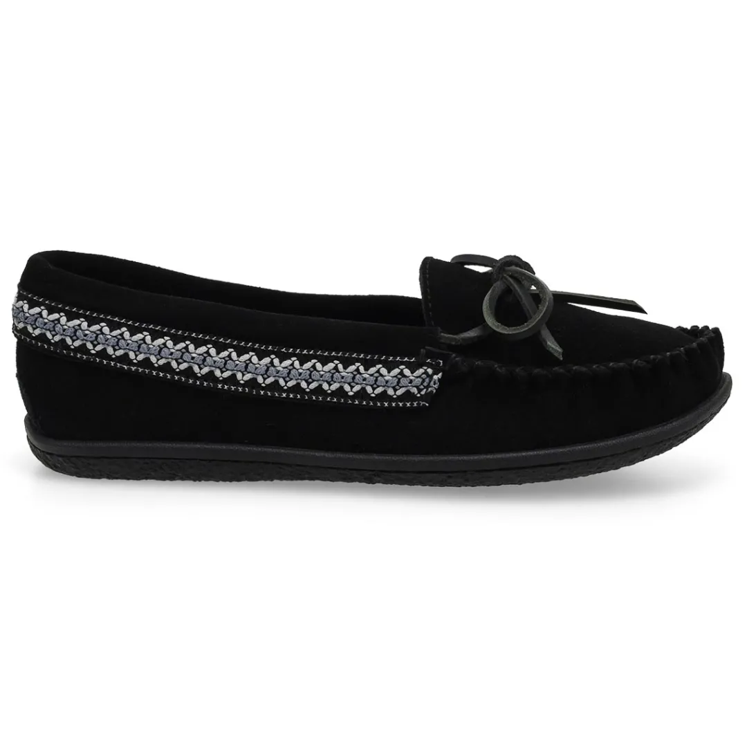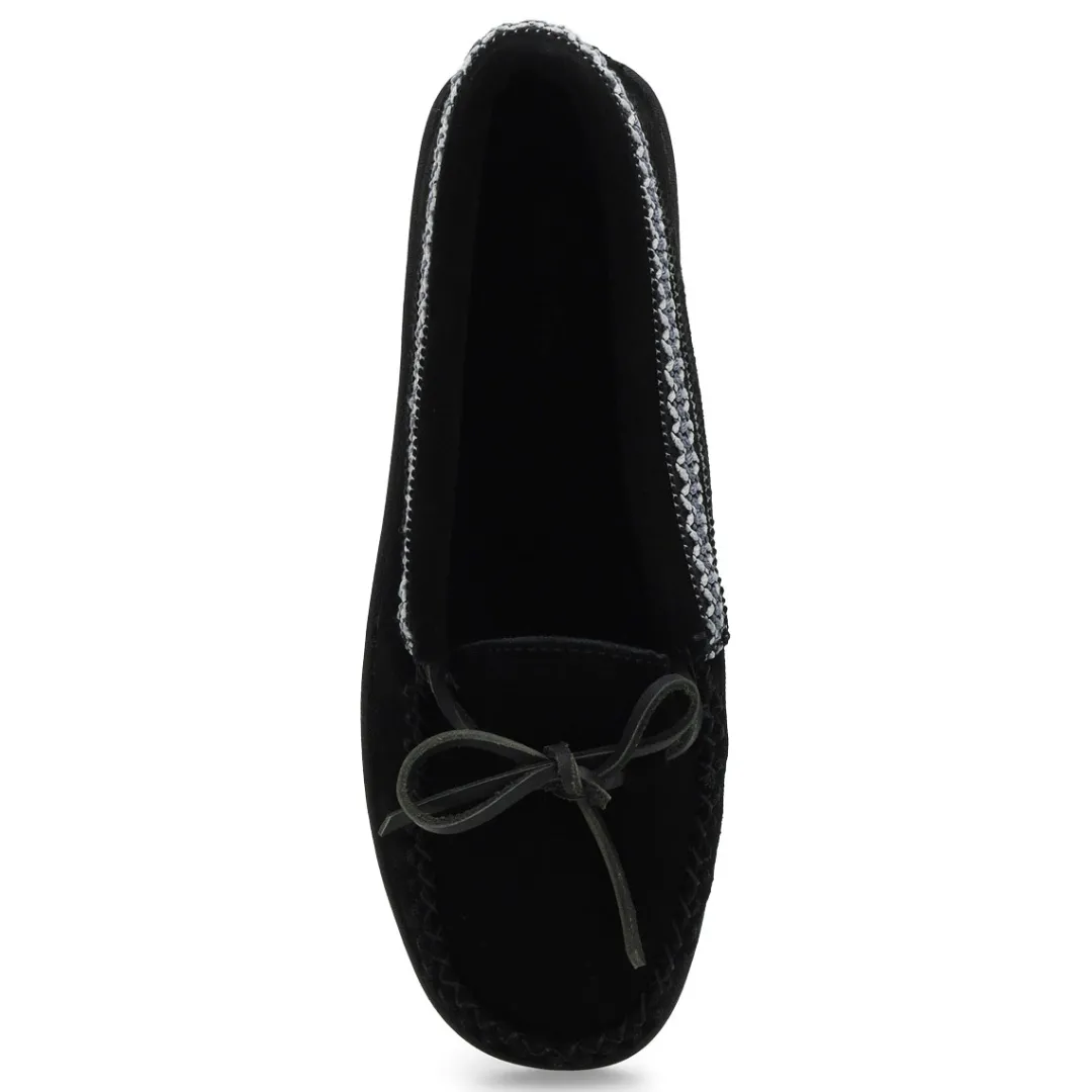 You will love the comfort and the warmth provided by the Angel chocolate suede SoftMocs from SoftMoc. The perfect gift for someone special, or just a treat for you ! Memory foam cushioned insole for added comfort. Handstitched front with a TPR outsole for durability. Beautiful suede upper with a braid tapestry trim.