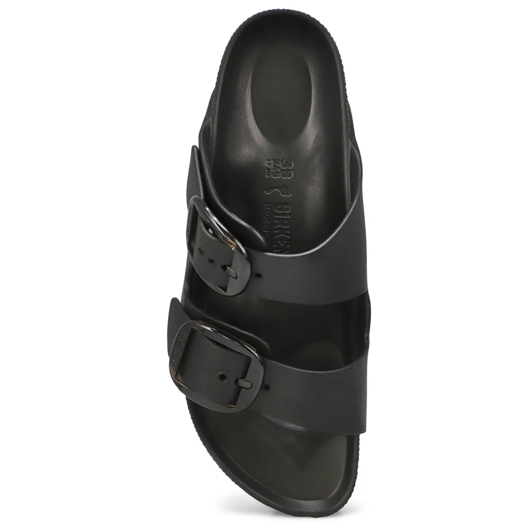 The Arizona Big Buckle Black EVA Narrow Sandal from Birkentstock is a high-quality, odor-neutral EVA has been tested for harmful substances and combines numerous positive attributes: it is very light, highly elastic, water-resistant, and skin-friendly and offers the comfort you have come to expect from Birkenstock. This version features thier popular Big Buckle made from a stainless synthetic material and makes an impression with its durability and minimalist design. Made in Germany.