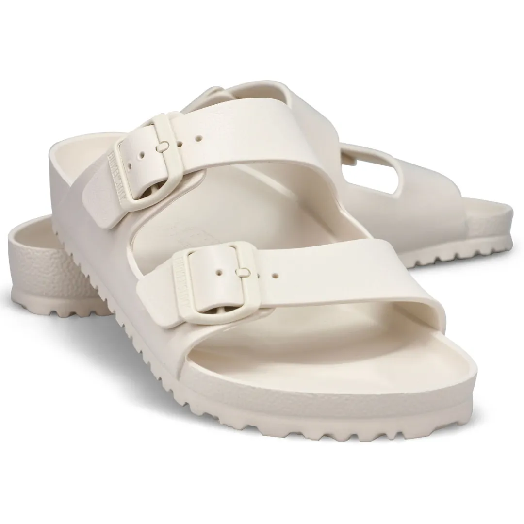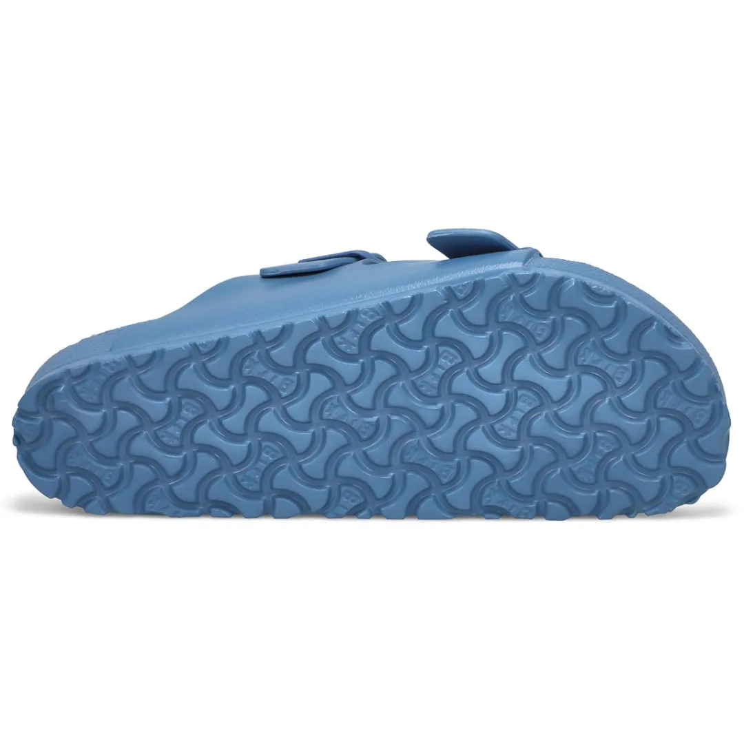The Arizona EVA green two strap upper from Birkenstock with a cushioned orthotic footbed provides excellent arch support. The days will be filled with walking comfort, without compromising good looks and style. This Birkenstock sandal is a genuine classic, emphasizing the handcrafted and natural look of stylish sandals. A comfort legend and a fashion staple.