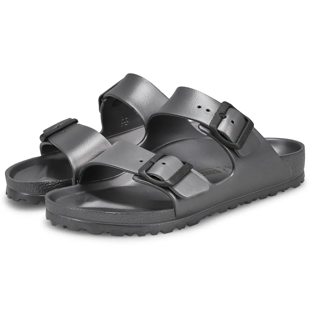The Arizona EVA elemental blue 2 strap upper from Birkenstock with a cushioned footbed provides excellent arch support. Your days will be filled with walking comfort, without comprising good looks and style. This Birkenstock sandal is a genuine classic, emphasizing the handcrafted and natural look of stylish sandals. A comfort legend and a fashion staple.