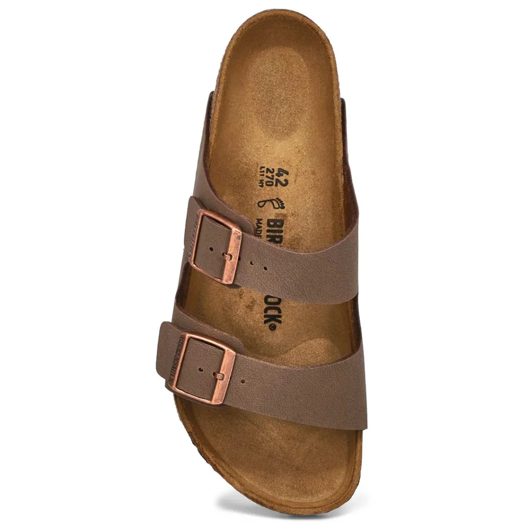 The Arizona Birko-flor 2 strap upper from Birkenstock with a contoured cork footbed conforms to the shape of your foot and features pronounced arch support. Durable EVA outsole, cork footbed molds to each individual foot to provide a custom fit. This Birkenstock sandal is a genuine classic, emphasizing the handcrafted and natural look of stylish sandals. A comfort legend and a fashion staple.
