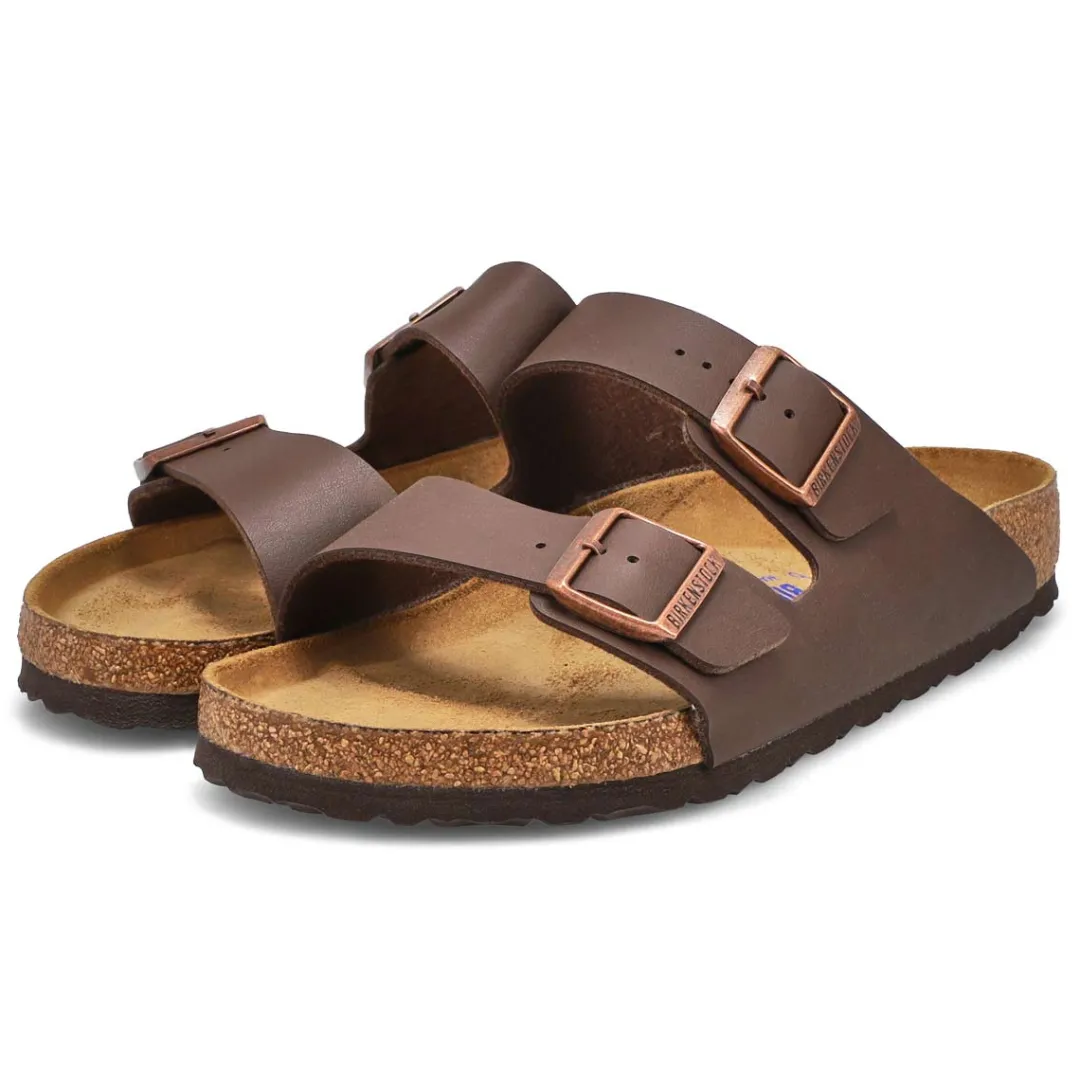 The Arizona Birko-Flor black 2 strap upper from Birkenstock with a cushioned footbed that provides excellent arch support. Durable EVA outsole, cork footbed molds to each individual foot to provide a custom fit. This Birkenstock sandal is a genuine classic, emphasizing the handcrafted and natural look of stylish sandals. A comfort legend and a fashion staple.