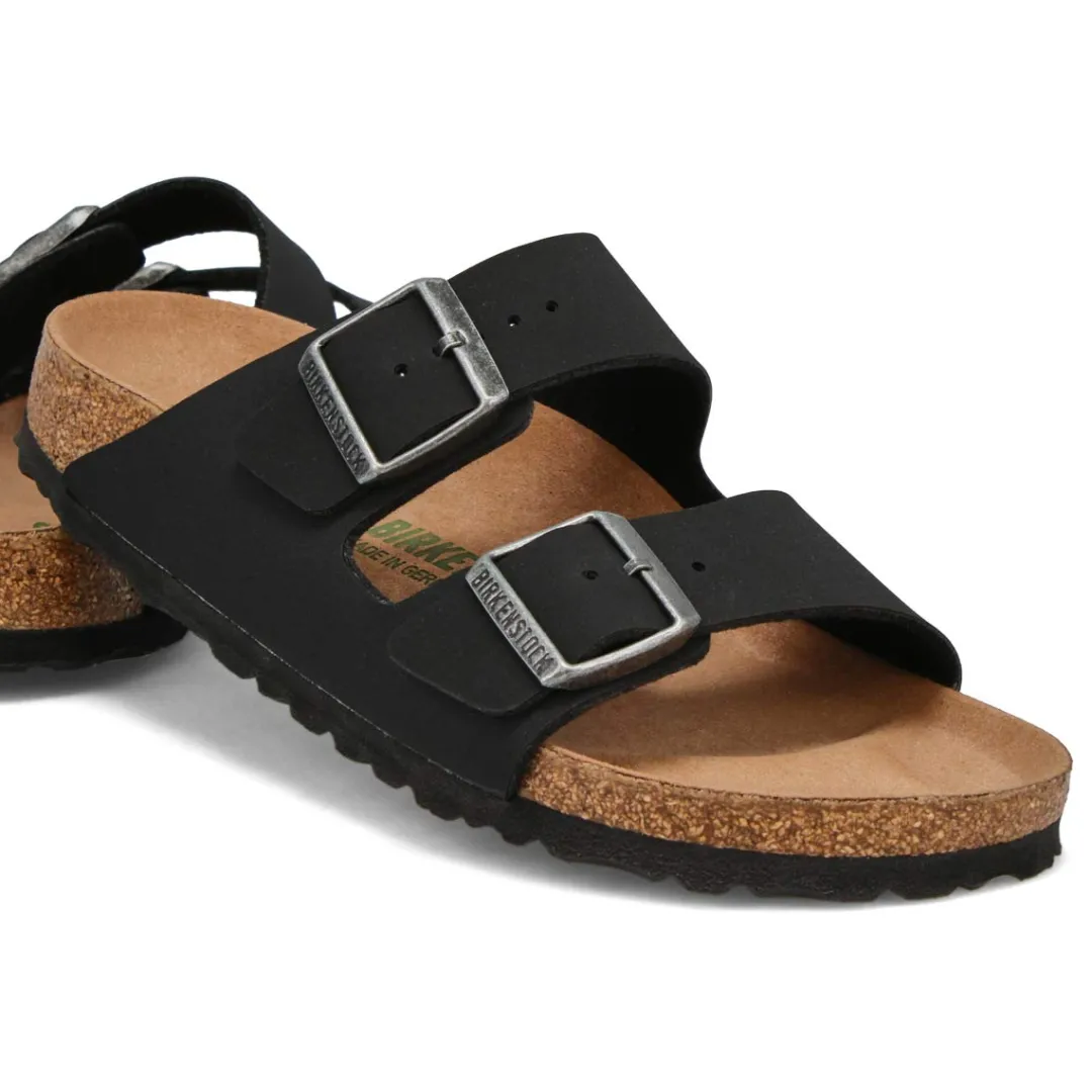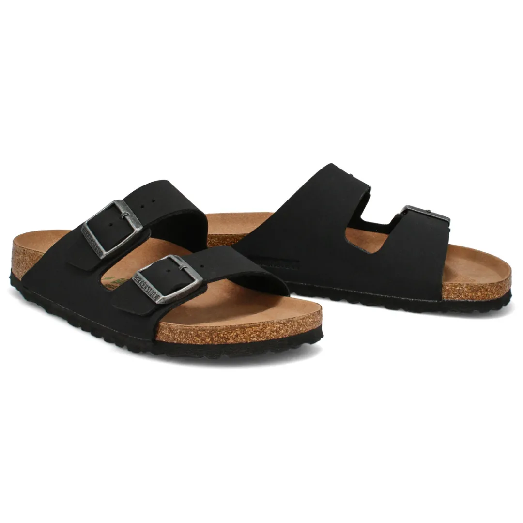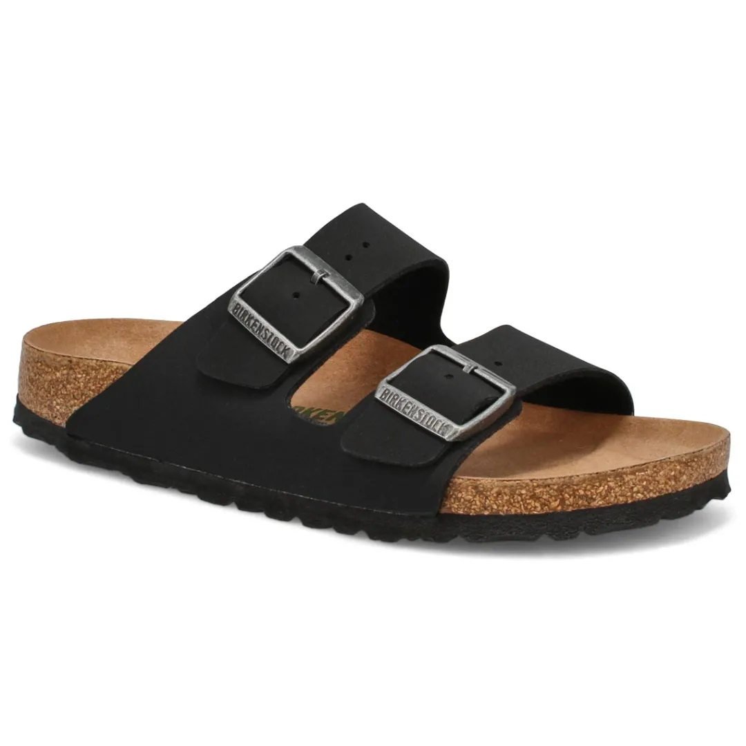 The Arizona Vegan 2 strap upper from Birkenstock with a contoured cork footbed conforms to the shape of your foot and features pronounced arch support. Durable EVA outsole, cork footbed molds to each individual foot to provide a custom fit. This Birkenstock sandal is a genuine classic, emphasizing the handcrafted and natural look of stylish sandals. A comfort legend and a fashion staple.