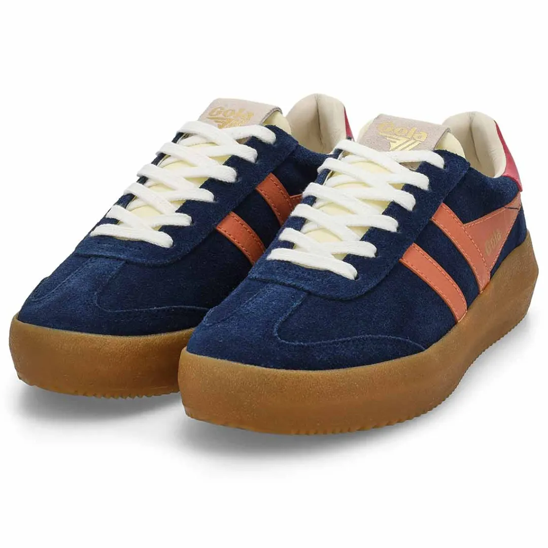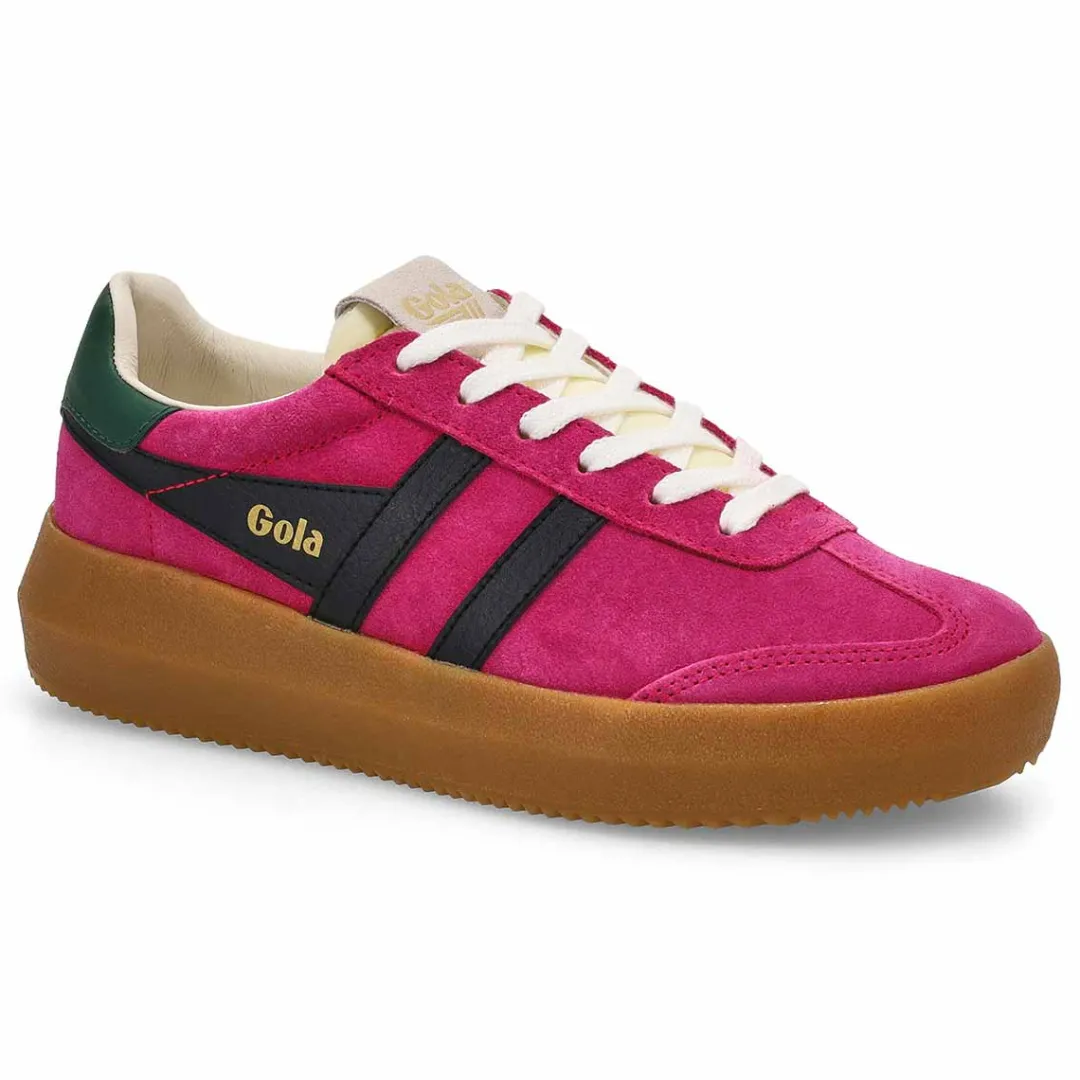 The Athena fuchia /black lace up sneaker from Gola combines a sleek T-toe upper. Crafted from luxurious suede, these fashion trainers feature textile and leather linings for a soft and breathable feel. With its elevated sole, Gola Athena is both a versatile and super stylish women’s footwear choice; dress up or down.