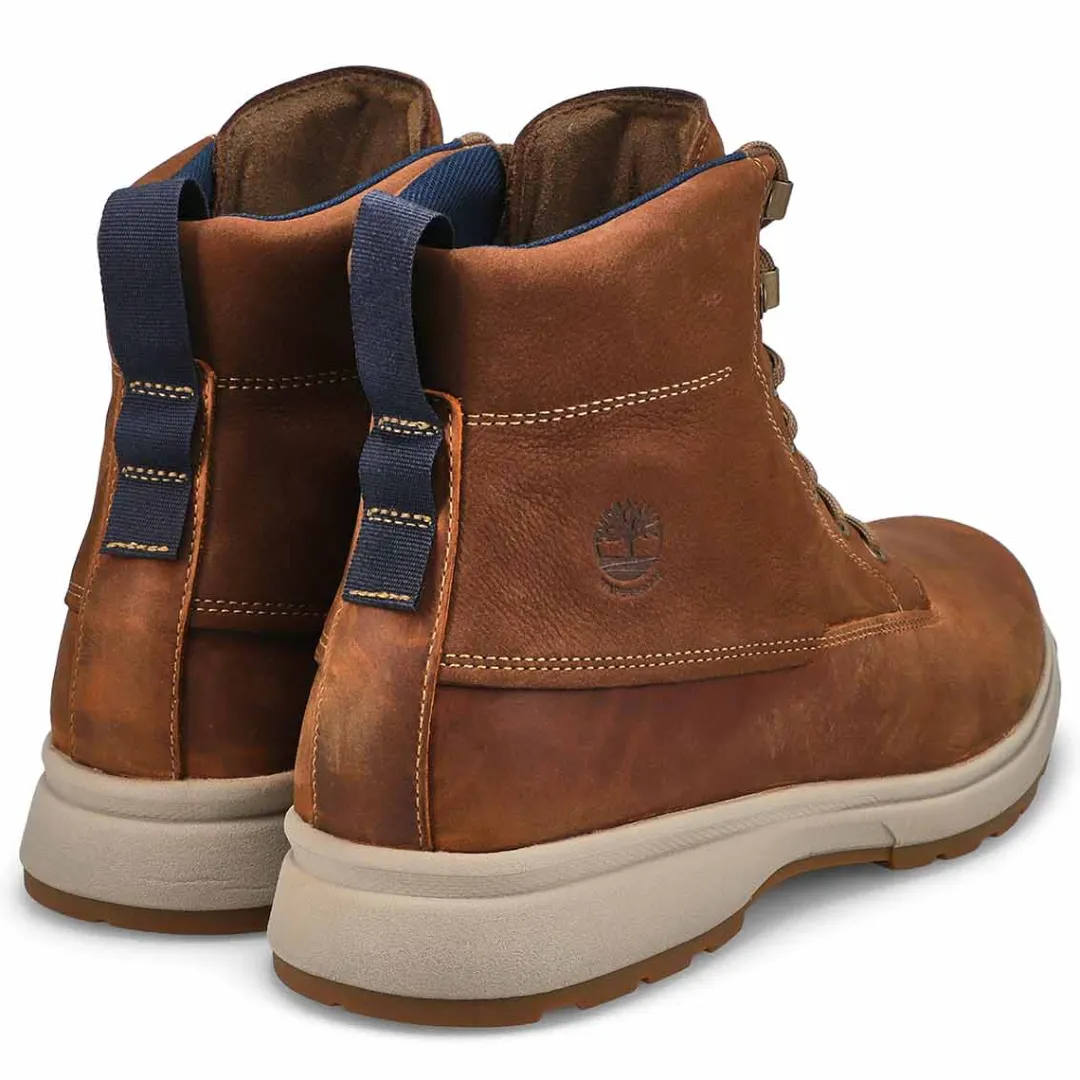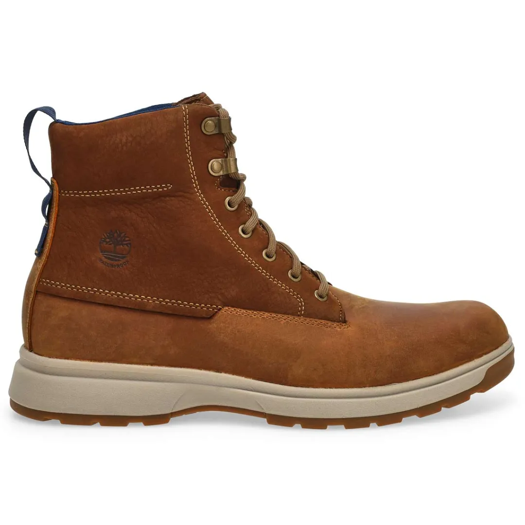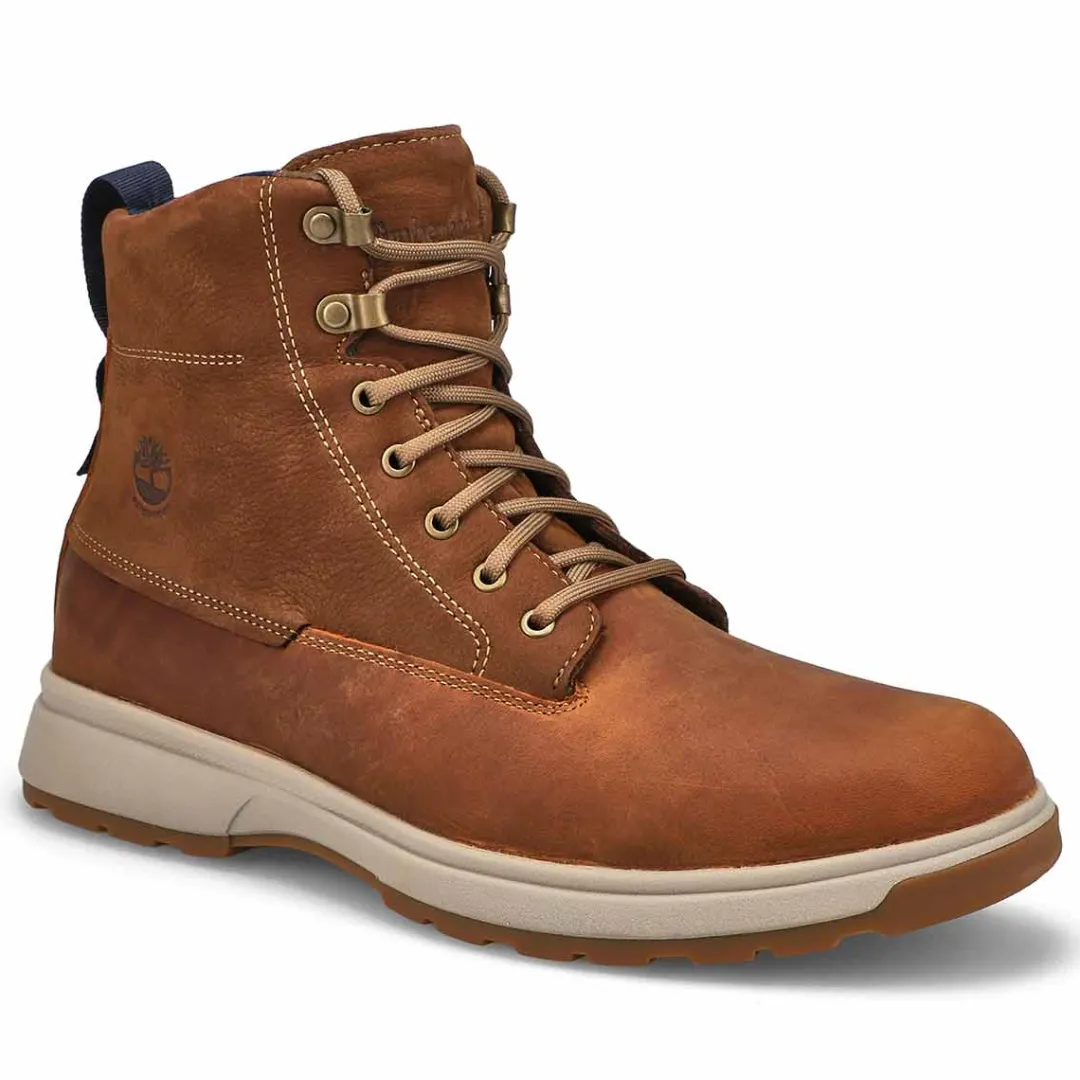 Enjoy comfort with every step in these fully waterproof boots with EVA-blend foam for high-rebound cushioning. The Atwells Ave rust waterproof casual boot from Timberland is crafted with premium Timberland leather and ReBOTL fabric lining containing at least 50% recycled plastic. Seam-sealed construction with an EVA footbed for added comfort. Timberland are members of the Leather Working Group.