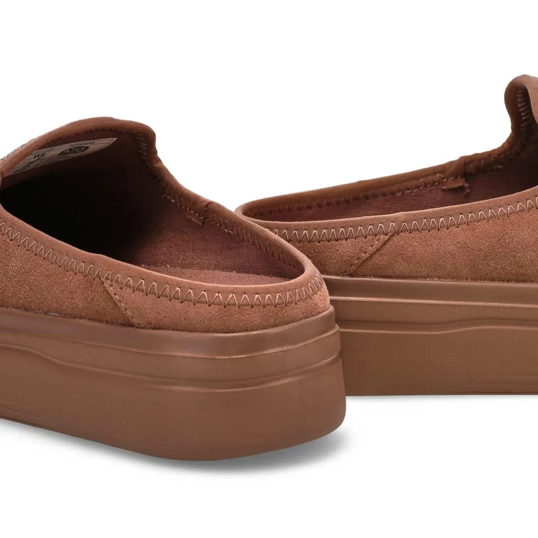 Step into elevated comfort with Austin Lift tan platform shoe from HEYDUDE. Inspired by trendsetters like Sydney Sweeney, these slip-ons are perfect for that bold, stylish look your seeking this season. Featuring a soft suede uppers with a moc-toe stitch, cushioned footbed for comfort, and raised back heel edge keeps your foot feeling secure for a snug fit.